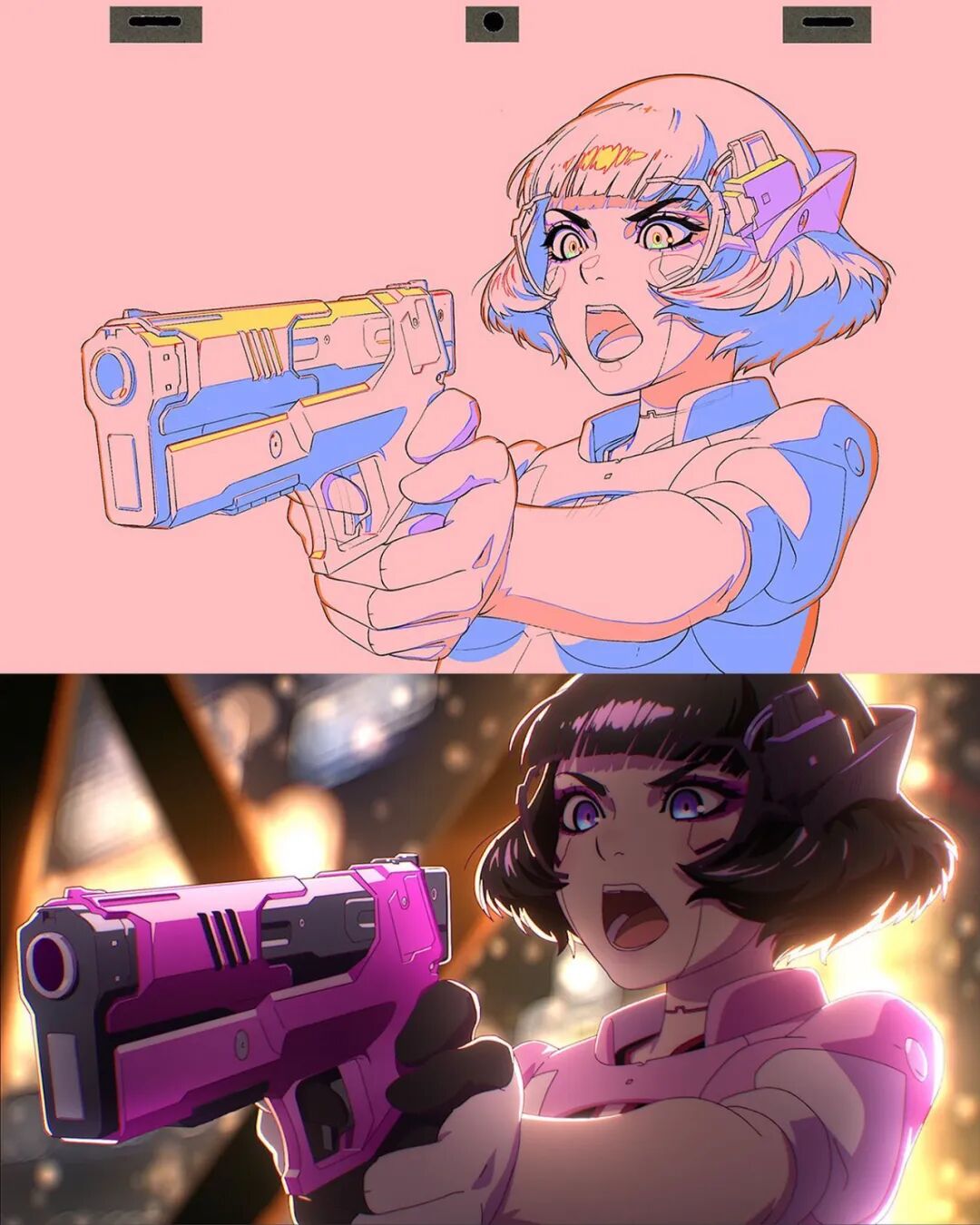 在伊利亚·库夫希诺夫近期的插画作品中,我们可以看到越来越多镭射风格,绚丽多彩的人物造型,给人们留下深刻的印象,在此之前,他在插画角色中添加镭射效果还有所克制,越到后期镭射效果越多,也越受到人们的欢迎。