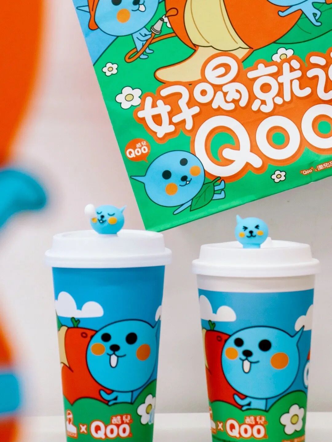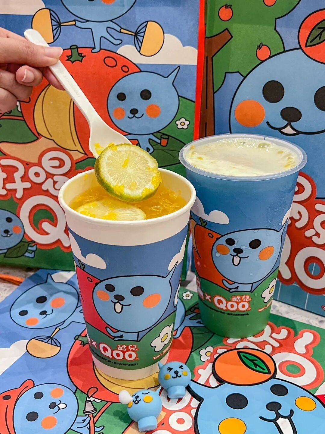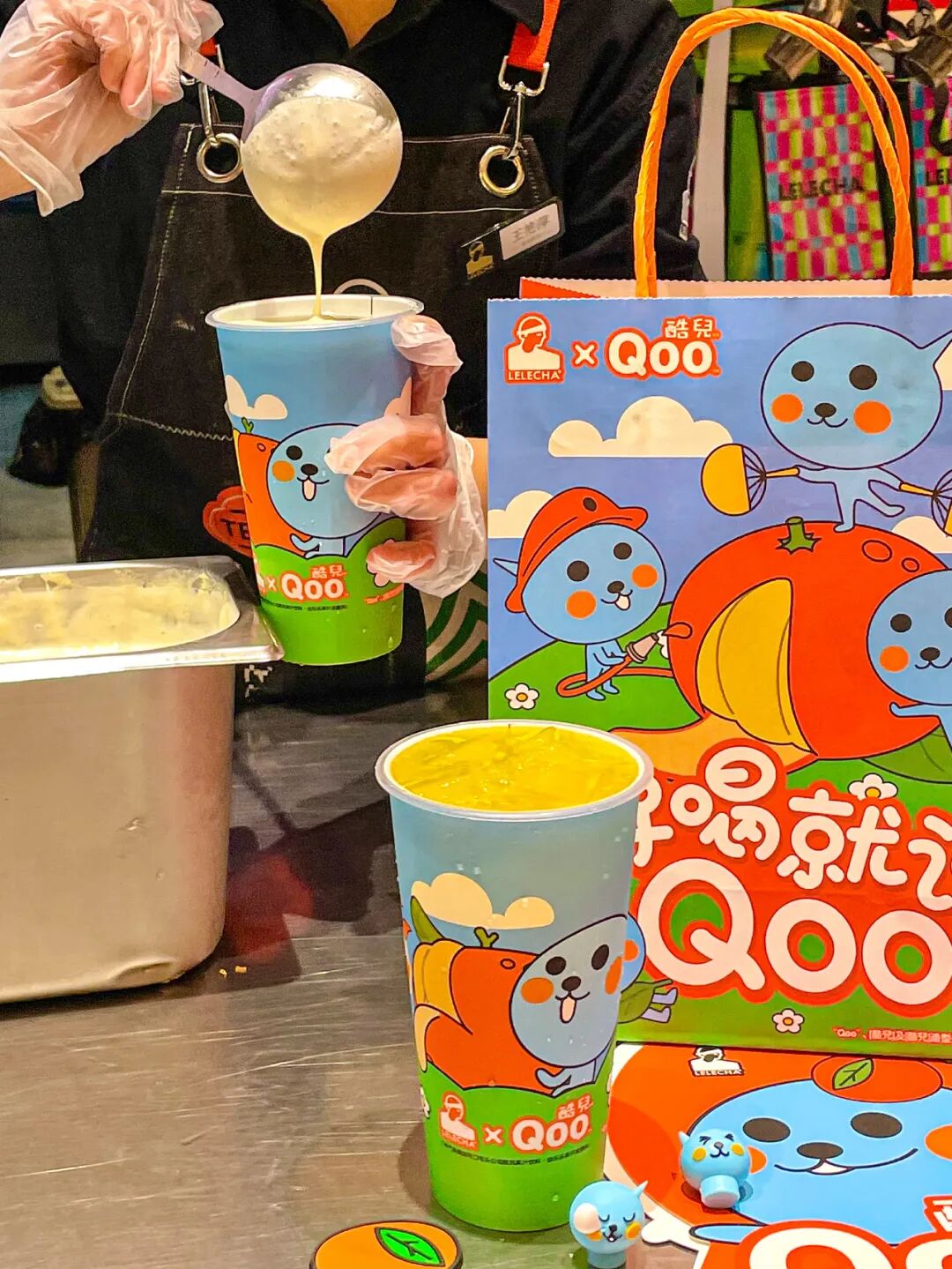 我们的童年回来啦!乐乐茶与经典饮料广告形象--酷兒上新联名限定!将蓝色装的酷儿‘搬“到杯身设计上,构建活泼、轻趣的画面场景,萌感十足!