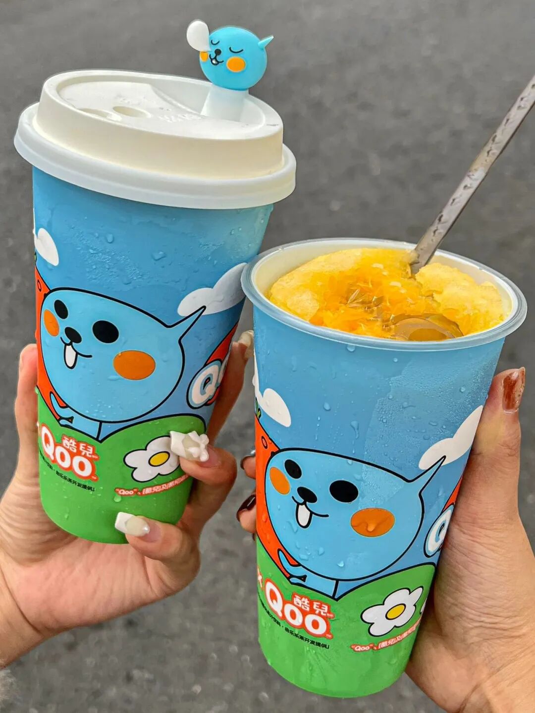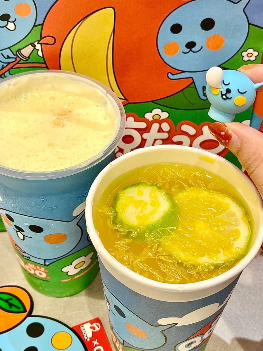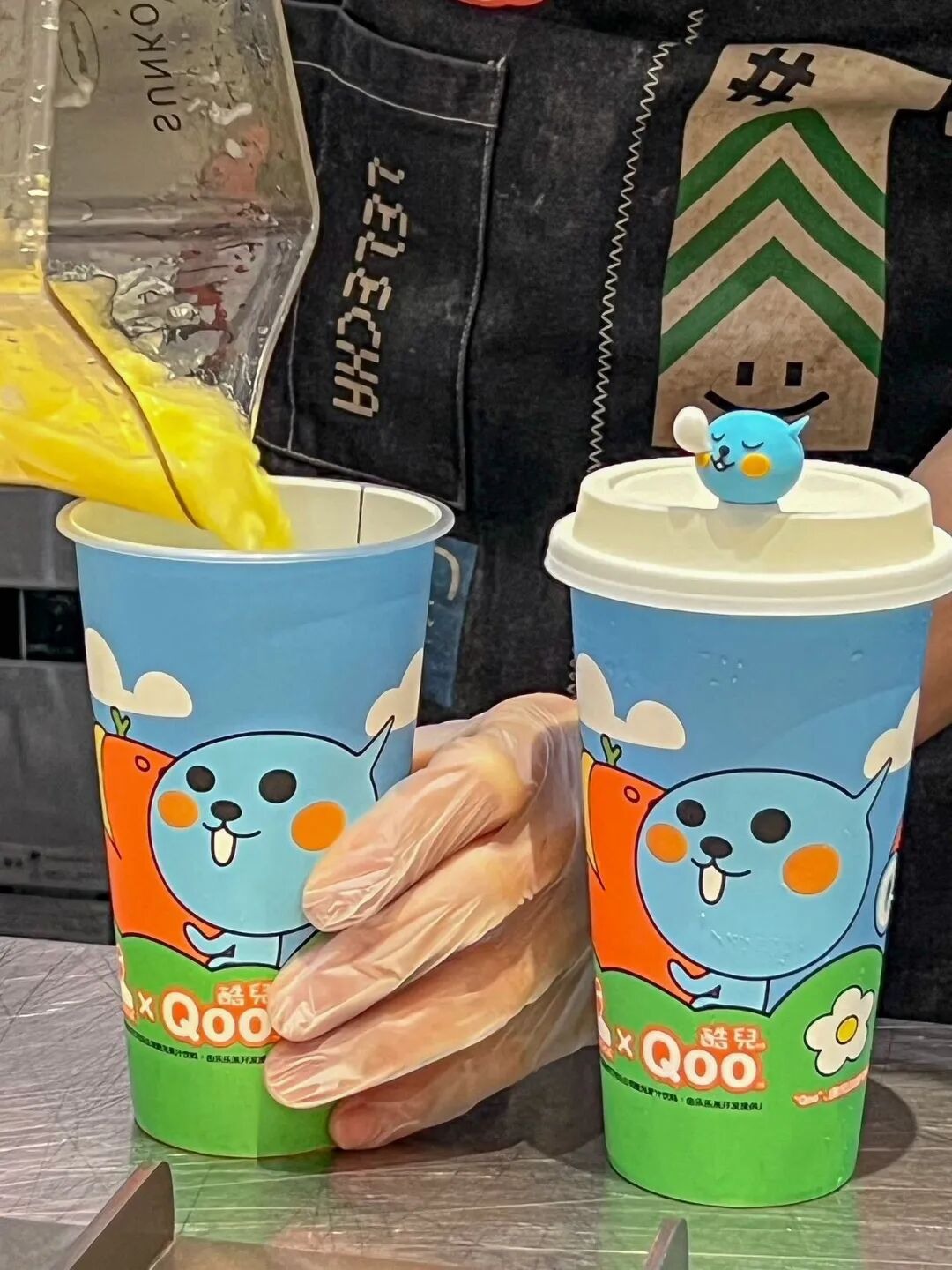 我们的童年回来啦!乐乐茶与经典饮料广告形象--酷兒上新联名限定!将蓝色装的酷儿‘搬“到杯身设计上,构建活泼、轻趣的画面场景,萌感十足!