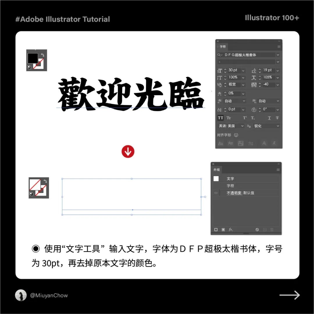 ❶ 使用“文字工具”输入文字,字体为DFP超极太楷书体,字号为30pt,再去掉原本文字的颜色。