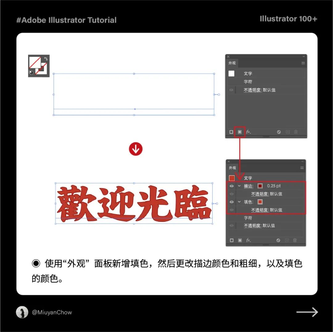❷ 使用“外观”面板新增填色,然后更改描边颜色和粗细,以及填色的颜色。