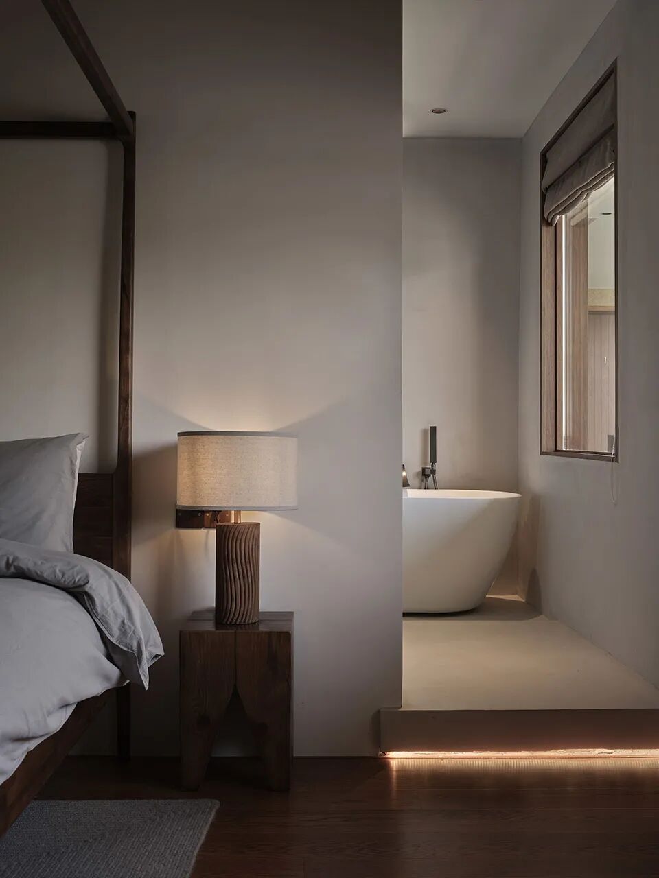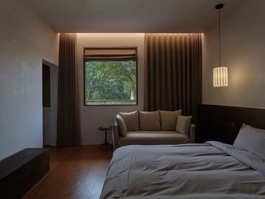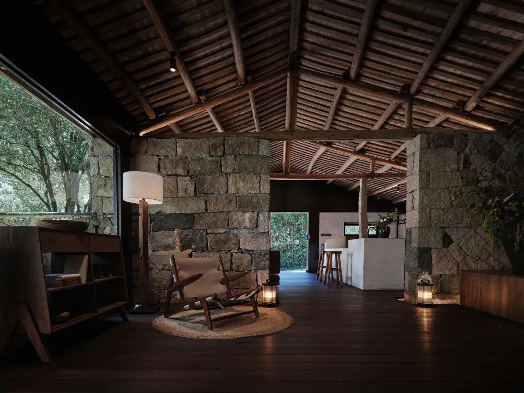 如同从院中走向外院,走到天地间,从外感受建筑的气韵与鼓岭的壮阔时,设计师常被勾起过往外出旅行、露营的记忆。那是他抛掉生活重荷,享受自然,极为放松自由的时刻。他希望能将这份惬意融于本案之中。