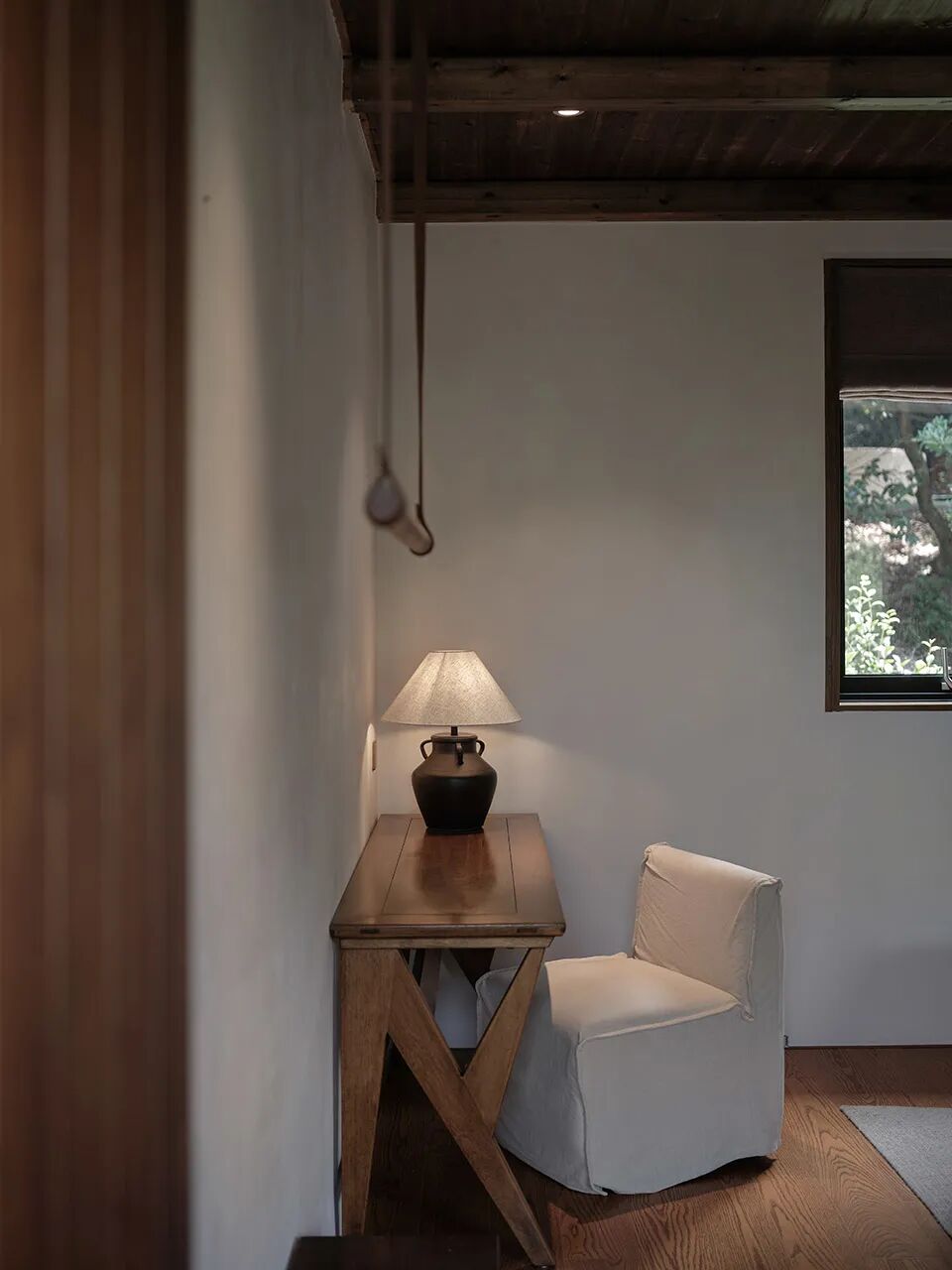 院内的巧妙设计还在细节处,比如桂花树下那块大石头。寻常方案是在院中放上桌椅供人休憩,但在本案中,设计师认为处在这样的环境里,人们会更喜欢坐在树下望远山、等微风、看落叶……而能与旧墙、老桂花树相配的,需是同样拥有时间沉淀由自然造就的大石。
