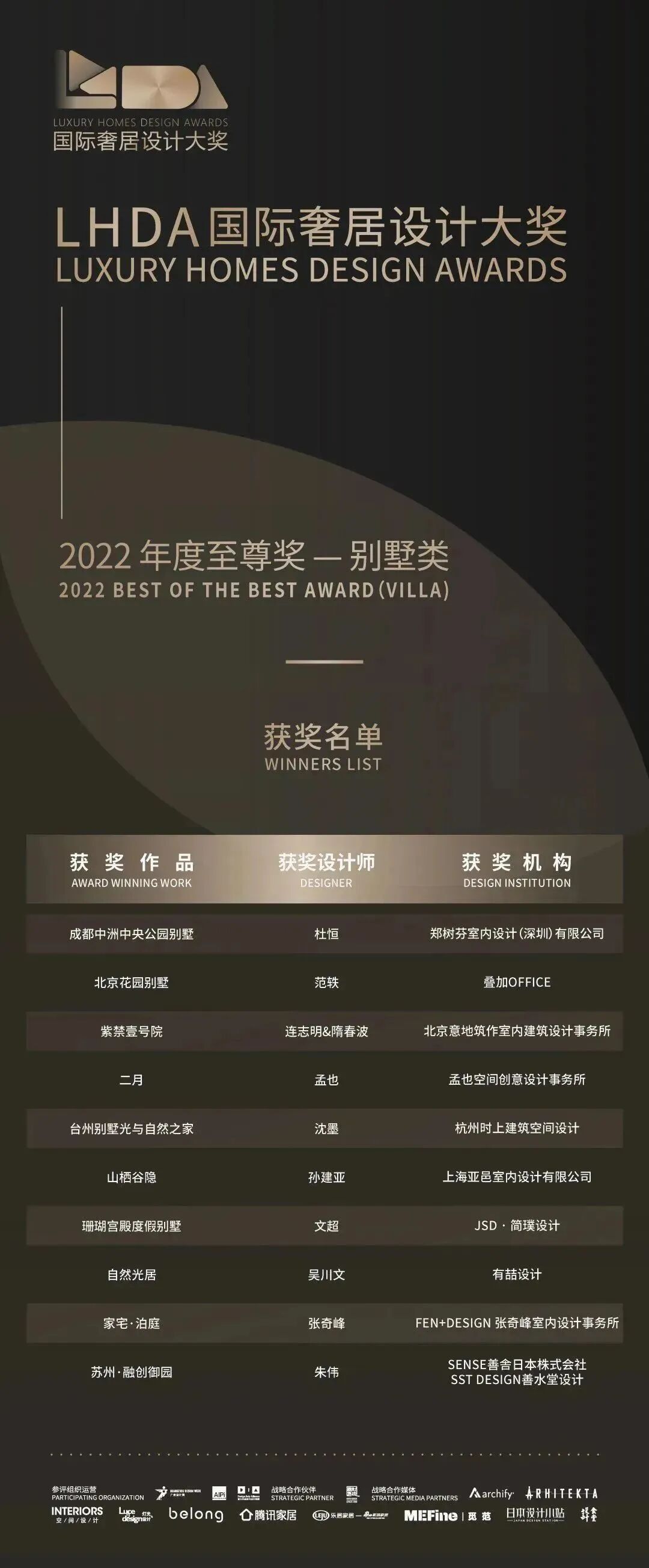 接下来,让我们一起揭晓下2022年度LHDA国际奢居设计大奖至尊奖的获奖作品&获奖者们!