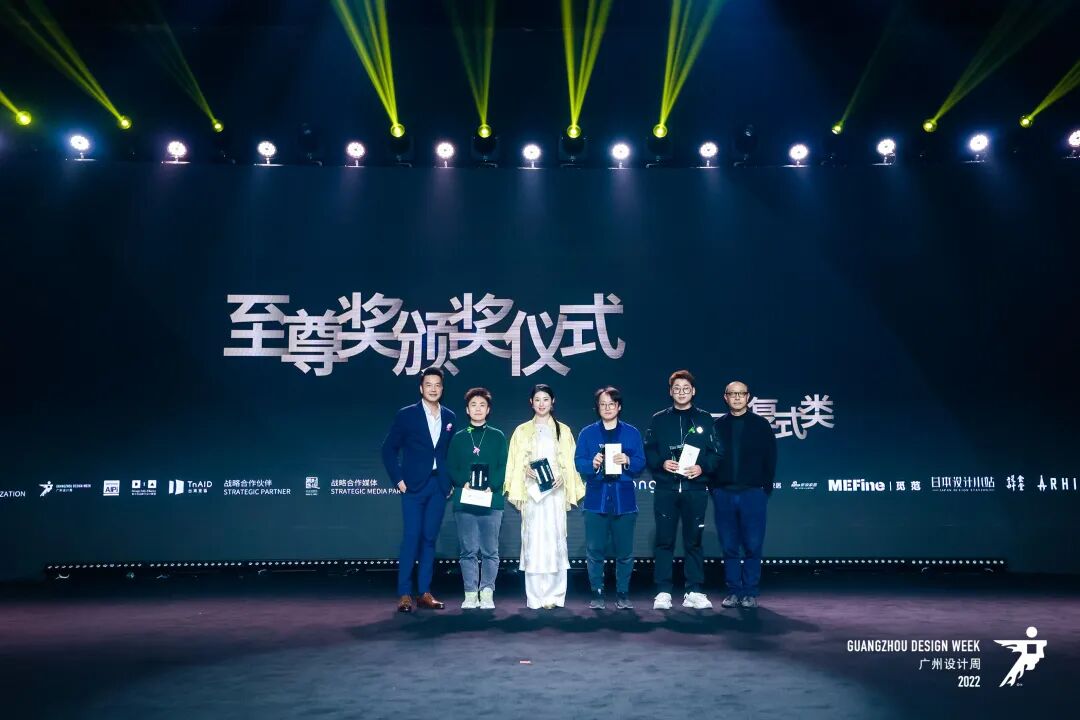 颁奖典礼现场,DCDA戴维国际设计创始人暨首席设计总监 张书铭先生、清华大学美术学院副院长 方晓风先生、华南师范大学美术学院教授 李邦耀先生、国振制造副总经理 陶柳女士、国振制造品牌总监 王亮先生为获奖设计师们进行了荣誉颁发,鼓励他们的创新观念,致敬他们的工匠精神,为他们的卓越喝彩!
