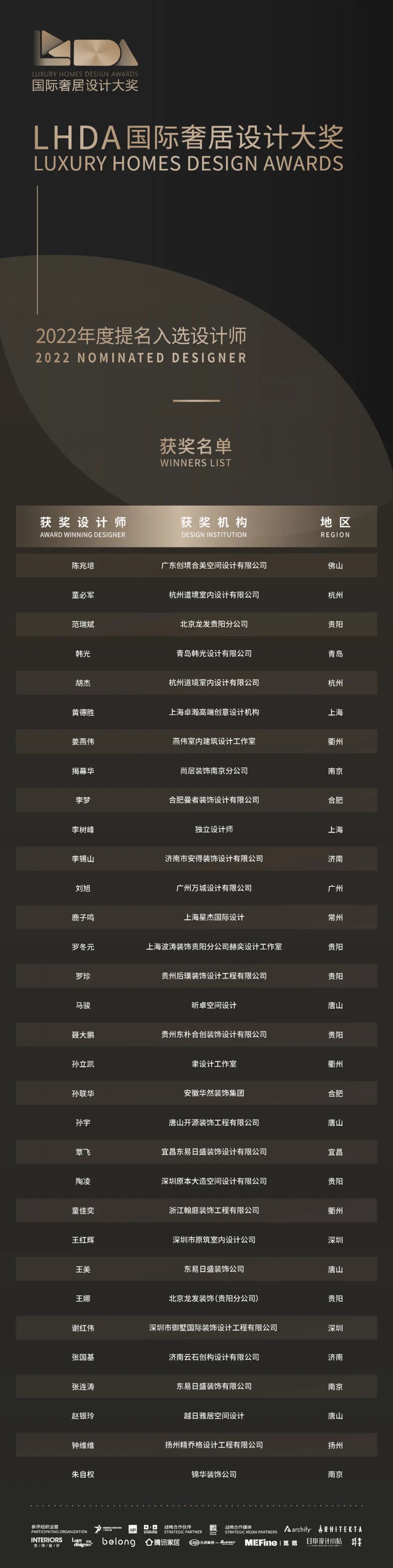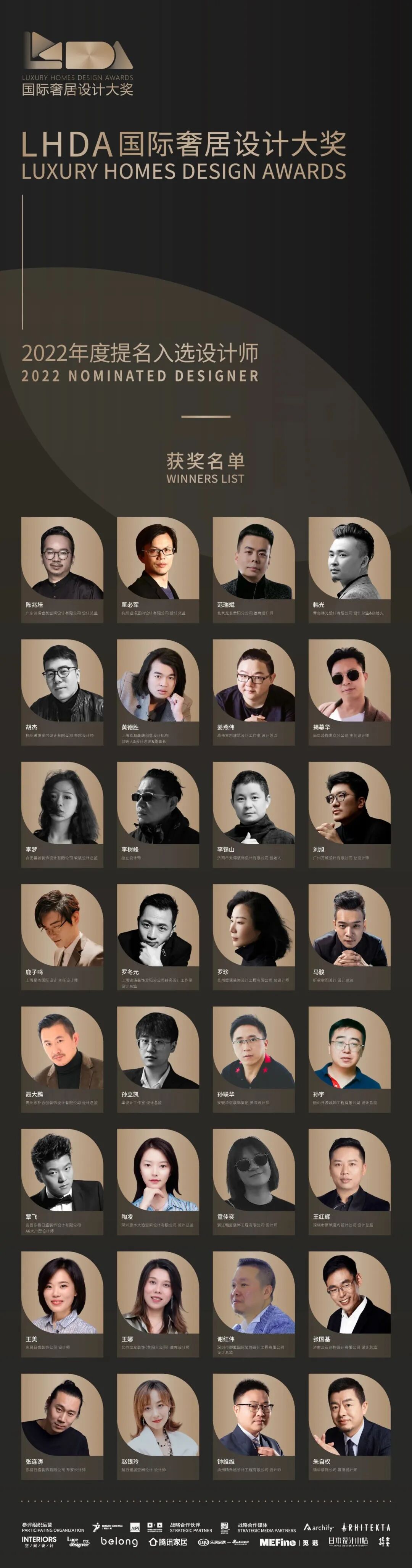接下来,让我们揭晓LHDA国际奢居设计大奖-2022年度提名入选设计师,共同领略他们的风采!