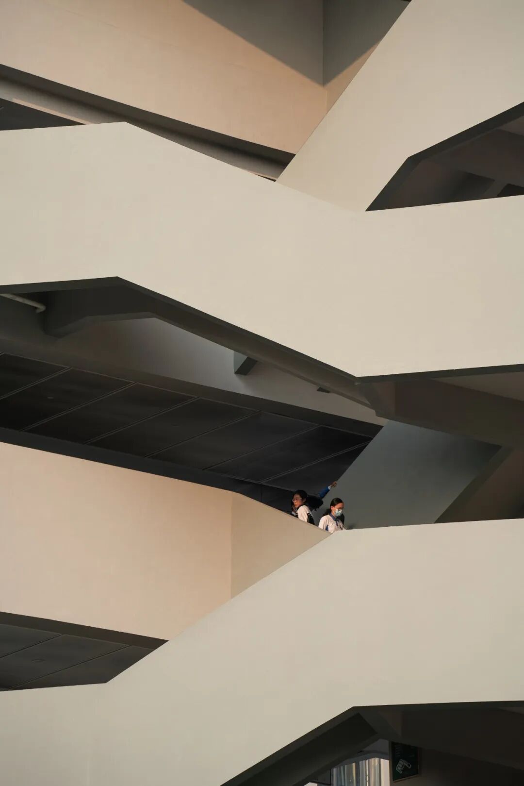 另外,为了打破现状教学庭院均质、较为封闭的内部界面,在设计中通过将实体栏板改为栏杆,同时结合非正式空间节点的变化,形成了更为丰富、通透和立体的界面,提供有趣多变的视线穿越与空间体验。