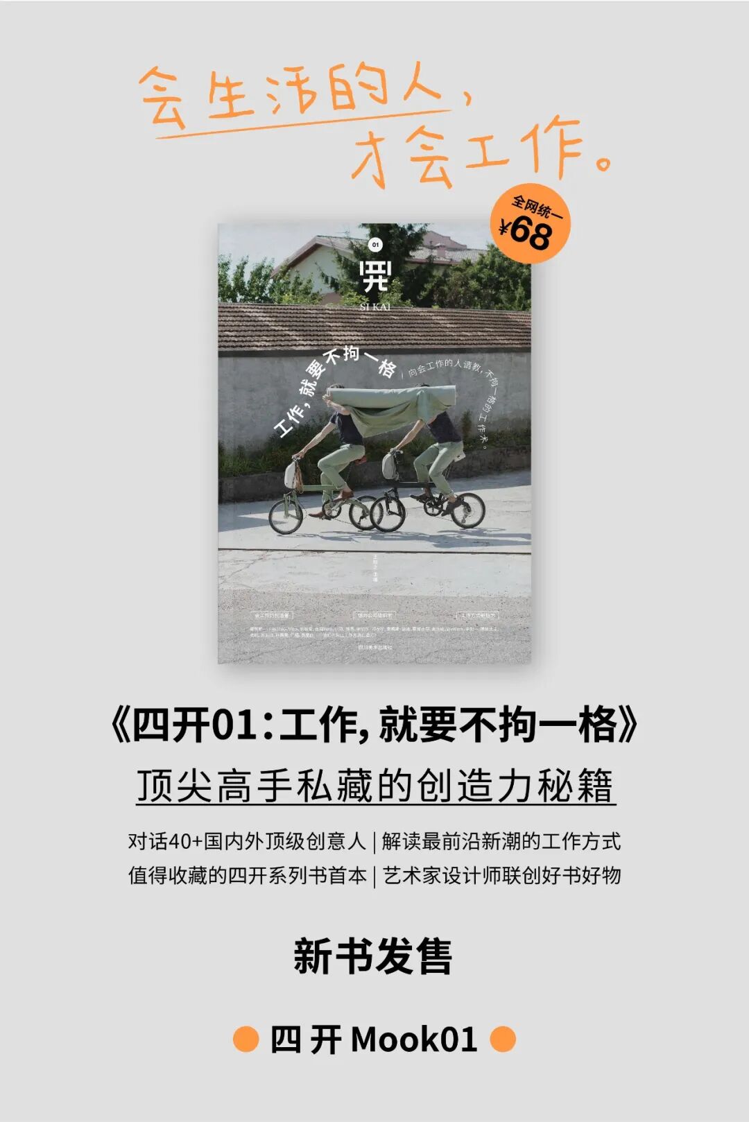 创意工作是什么?创意人都在关注哪些工作方式?我们历时15个月打磨推出的四开系列书首本《四开01:工作,就要不拘一格》中,对话了40+国内外顶级创意人,看他们如何保持工作原力,解读最前沿新潮的工作方式。
