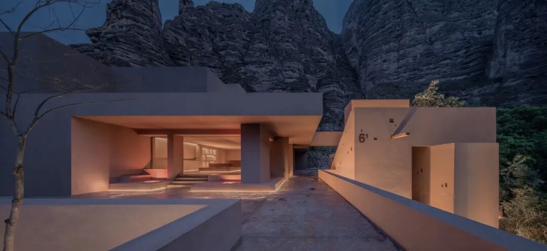 依循这些问题,设计团队让楼梯连接到游客中心的室内,向外打开游客服务中心,跟景观平台相互呼应在一起;在原有的建筑结构上进行改造,所有材质与现有的建筑统一,还原整体建筑色彩,与景观平台做一个链接状态;整体室内空间没有家具与造型装饰,用做减法的方式,只围绕人坐、卧、行的行为去探讨,用三种简单的尺寸关系把控人体单纯的行为意识,引导人的行为在空间中体验和感受炳灵文化和历史以及大自然的馈赠。