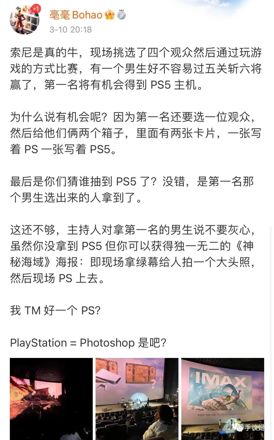 如果主办方大方点,是一名随机观众送PS5,一名玩游戏好的送PS5,再送点别的,估计就没人有意见了……但话又说回来,这个本来就是小范围的观影活动,主要目的还是来看电影的,奖品啥的不过是个添头,估摸着主办方根本没往这方面想。
