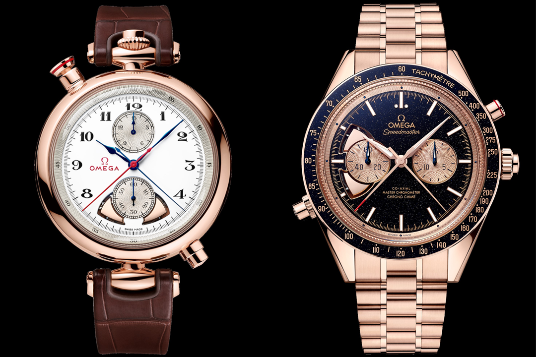 2022年,正是第一枚三问腕表诞生130周年、欧米茄与奥运结缘90周年、欧米茄超霸腕表首次进入太空60周年,所以欧米茄才会推出这样一枚“追针计时三问机芯”,并把它装入两个不同表壳。
