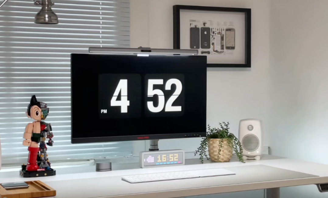 相对于传统的屏保程序,这款屏保没有绚丽的色彩,仅仅用白色的数字显示在黑色的背景下,一个复古风翻页时钟跃然屏幕之上,搭配iMac一体机电脑,显得简洁而大方,逼格满满!