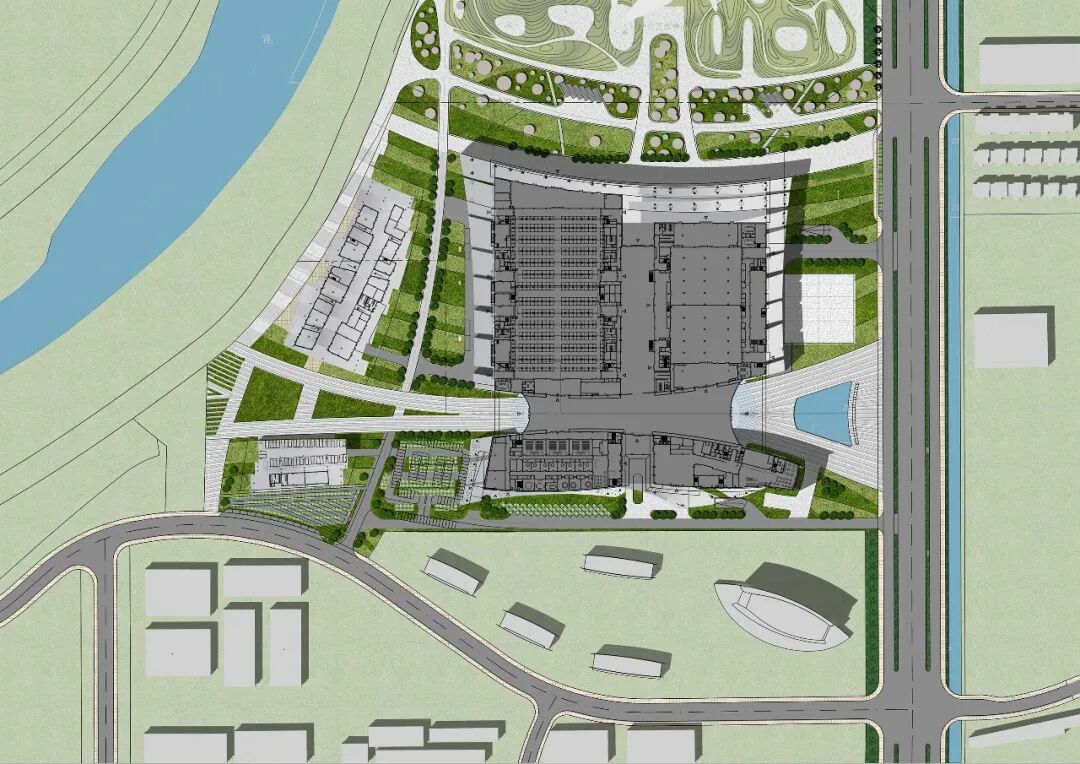 建筑面积:A区块布置国际会展中心,总建筑面积165000㎡