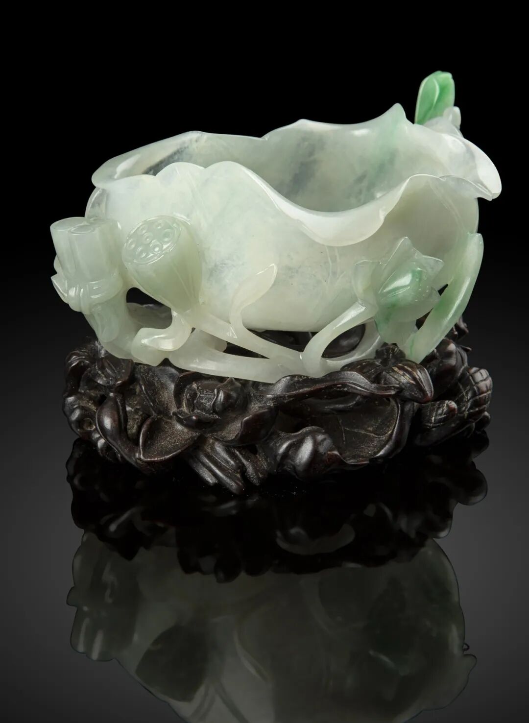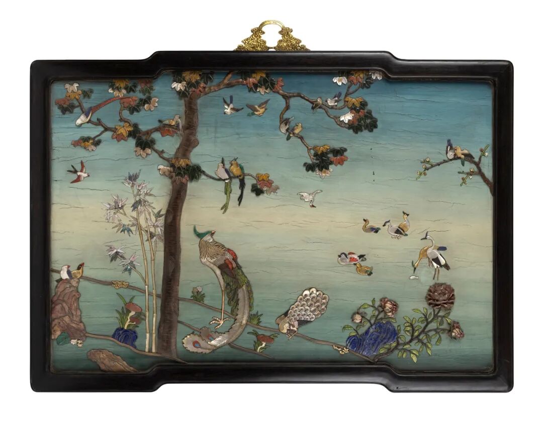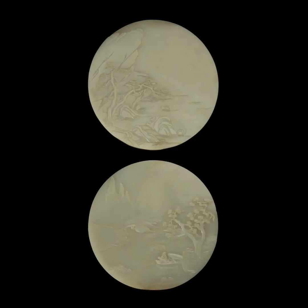 注:一对青白玉雕山水图圆屏配碧玉雕座,售于纽约苏富比,2020年9月23日,拍品655,可资比较。