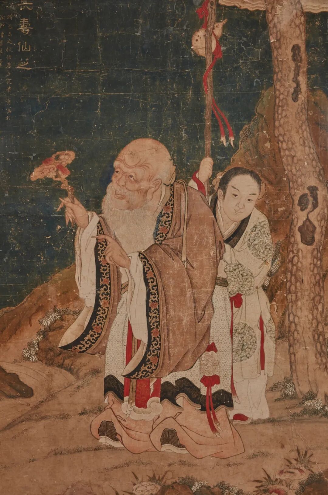 注:顾见龙,字云臣,江苏太仓人。1660-70年间任宫廷画家。大英博物馆藏有一副其观音像,馆藏号「1910,0212,0.486」;与本拍品类似主题的人物画像,顾见龙款,描绘南极仙翁,售于纽约佳士得,2021年3月19日,拍品852。