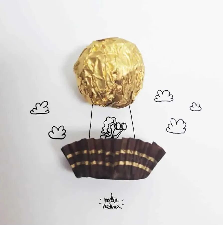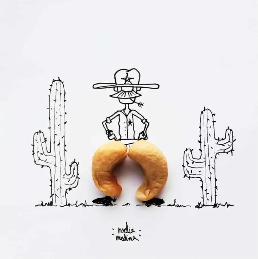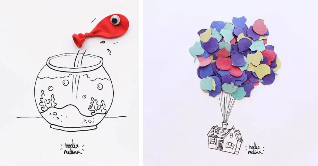 先让我们一起来认识一下来自西班牙的视觉艺术家诺莉亚·梅迪娜·纳瓦罗,这是艺术家专攻平面设计和广告设计,她自己成立了一个个人工作室,在工作之余,这位视觉艺术家喜欢动手制作一些有趣的小作品,作品的主角就是我们常见的日常作品,通过简单几笔形成的画面,再加上这些日常作品,一幅有趣的创意画作就形成了。