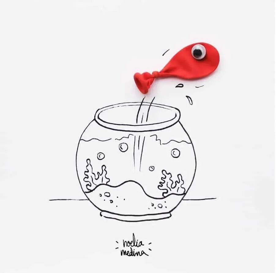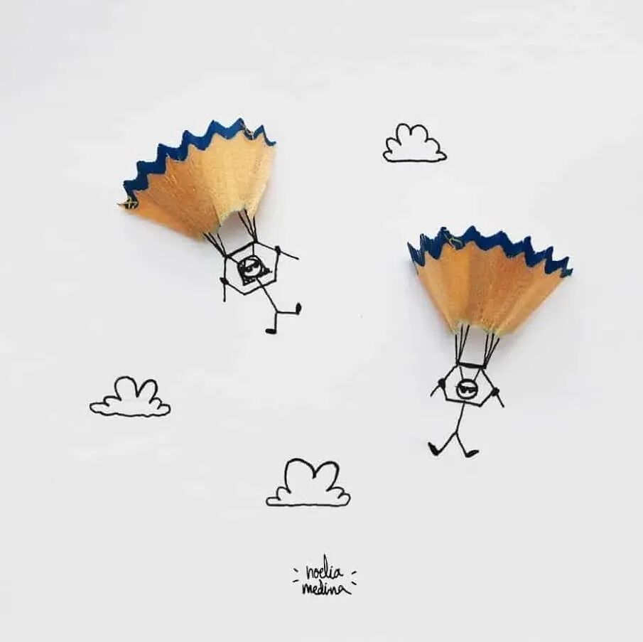 在这位视觉艺术家的手中,彩色气球变成了金鱼,爆米花成了绵阳的身体,而腰果则成了牛仔的裤子,就连铅笔屑都演变成了降落伞,一个个干净简约的创意作品,展现出闪光的想法,让观看到的人,也会感觉十分舒适,一眼就会爱上这些有趣的创意画作。