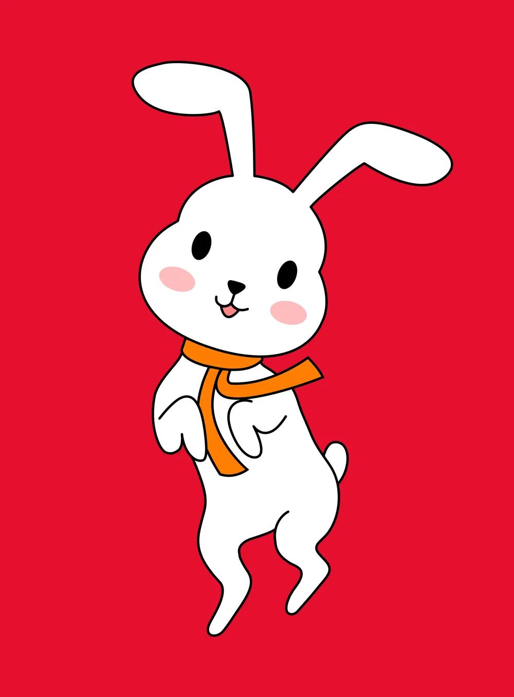 ❹ 给图案填上颜色,白色的兔子比较符合大众的联想和审美,在红色的背景上也会比较突出和美观,为了与背景有所区别,围巾我使用了橙色,在脸上添加腮红可以让兔子变得更可爱一点。