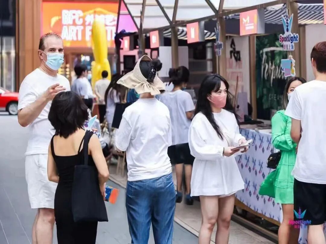 此外,现场工作人员尽职尽责又饱含活力的态度也给艺术市集增添了一抹亮色。部分工作人员穿着有艺术家亲自设计的T恤和游客自在畅谈,让“全民艺术”的氛围愈发浓烈且有趣。