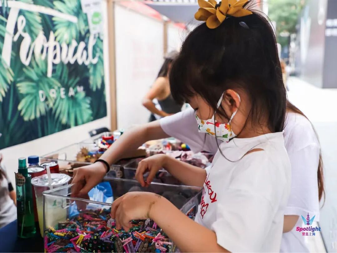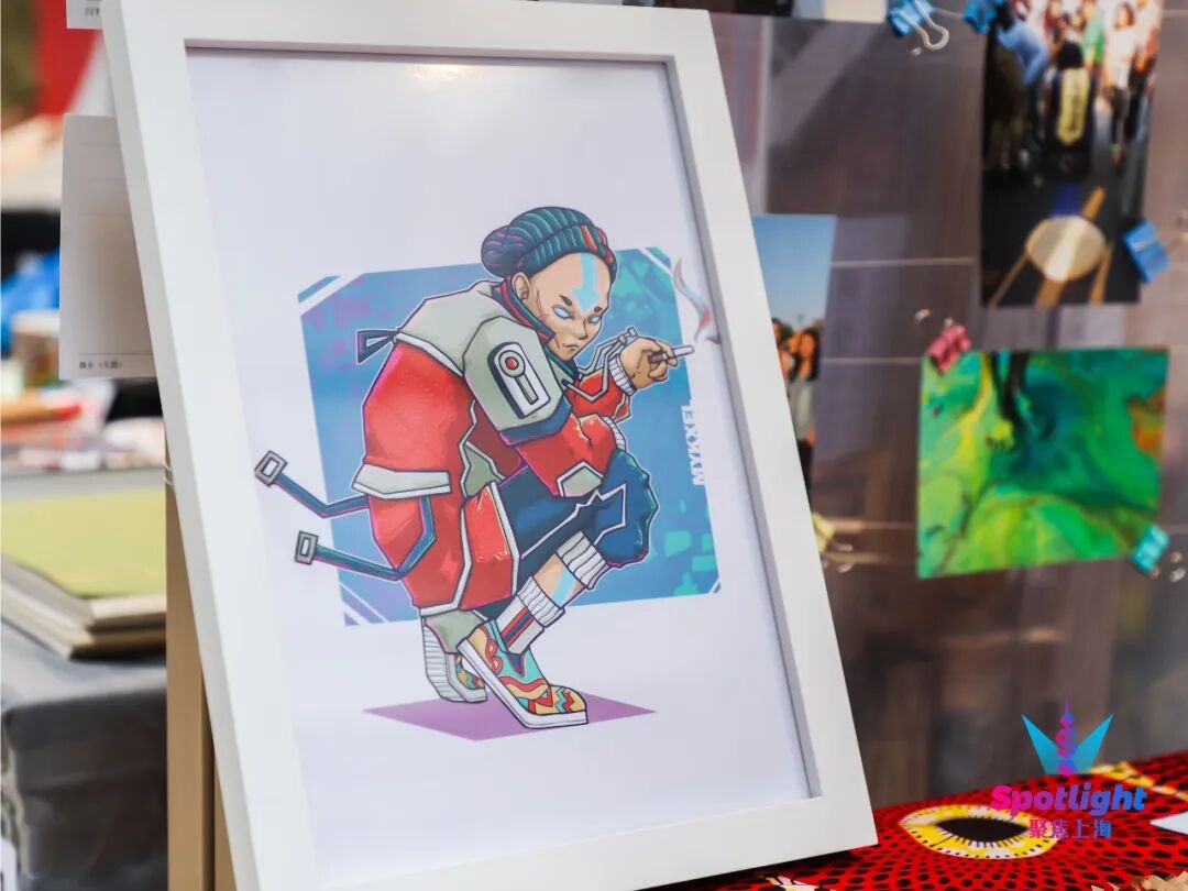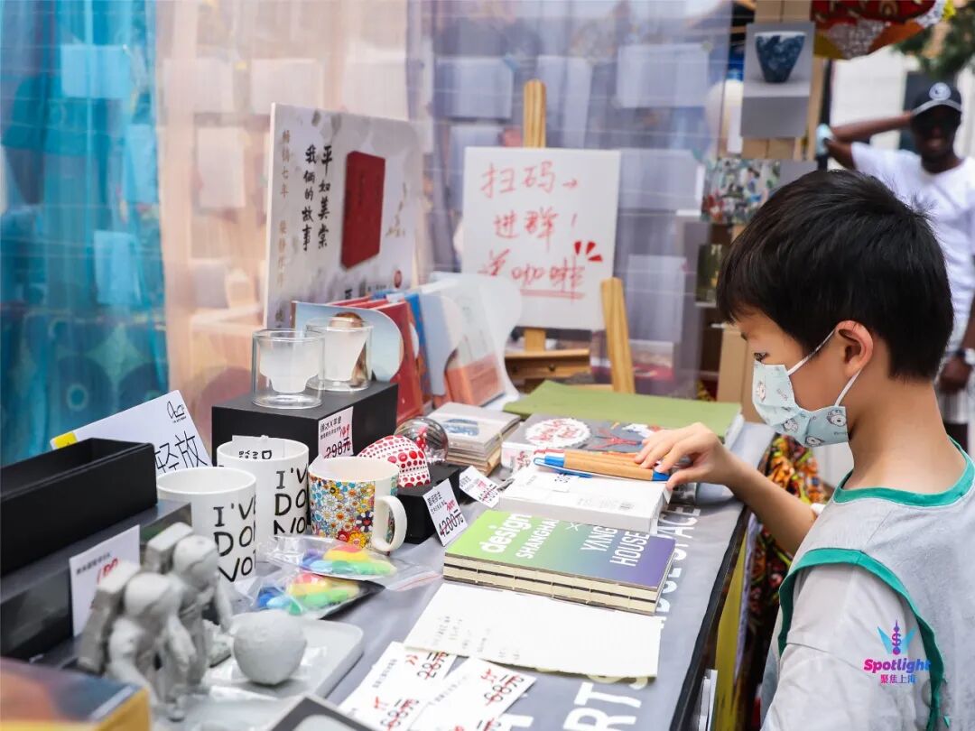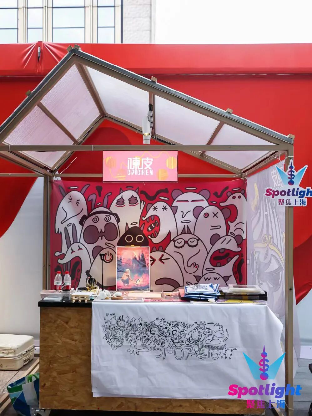 艺术市集现场,陈皮工作室展位前设置的以SPOTLIGHT聚焦上海艺术市集为主题的手绘动漫长卷轴吸引了很多不同年龄段的朋友参与填色。小朋友们蹲在展位前提笔填色,温馨的亲子互动在这里上演,而画布上留下的痕迹是他们艺术灵感最直观的体现、最生动的描绘。