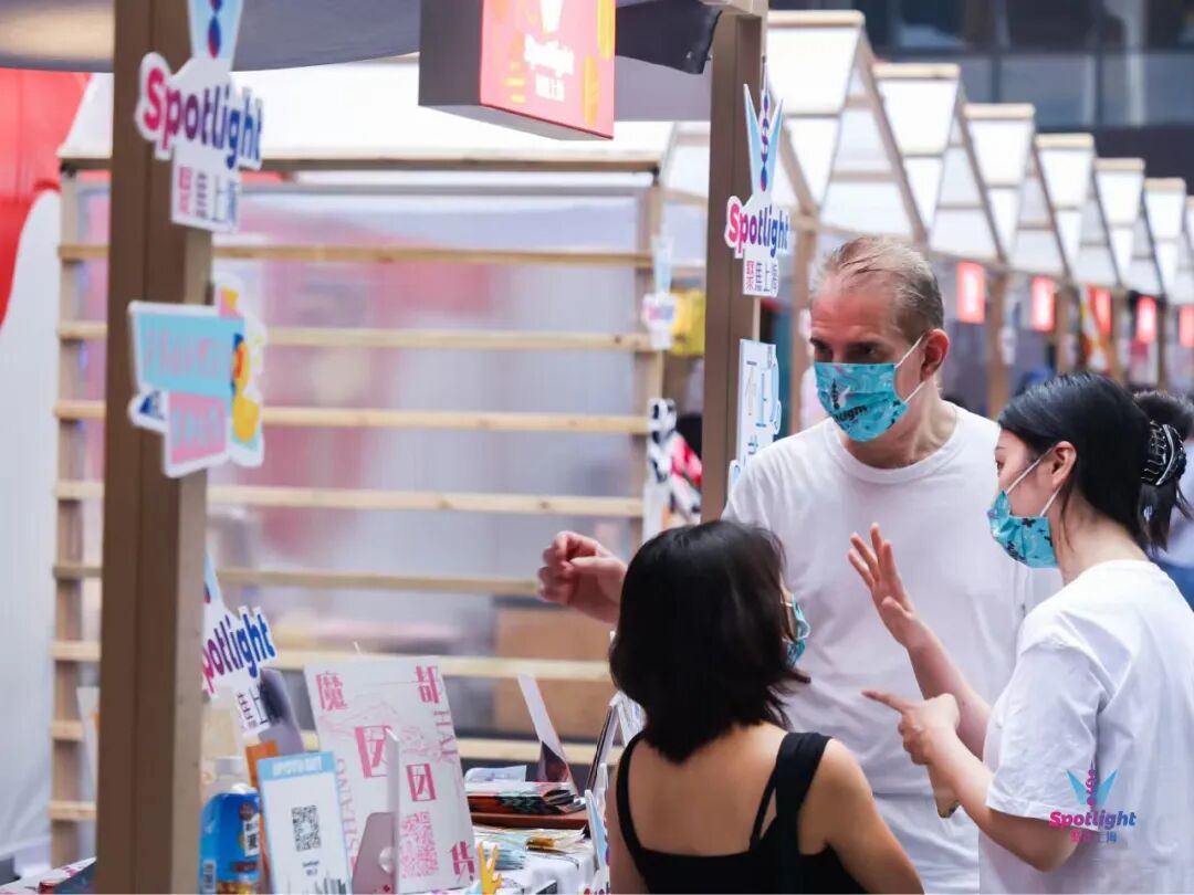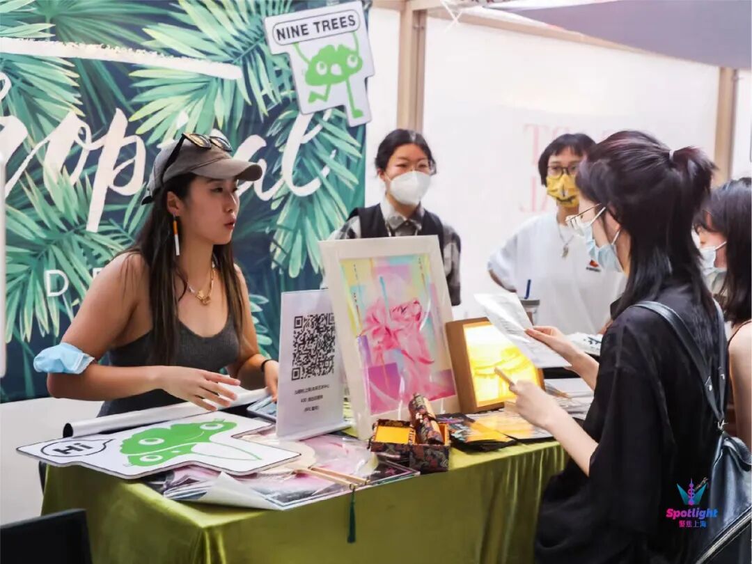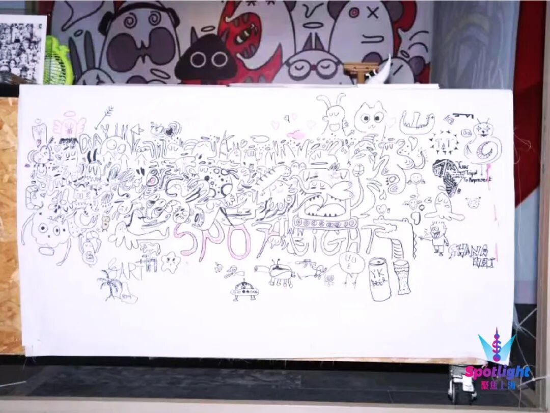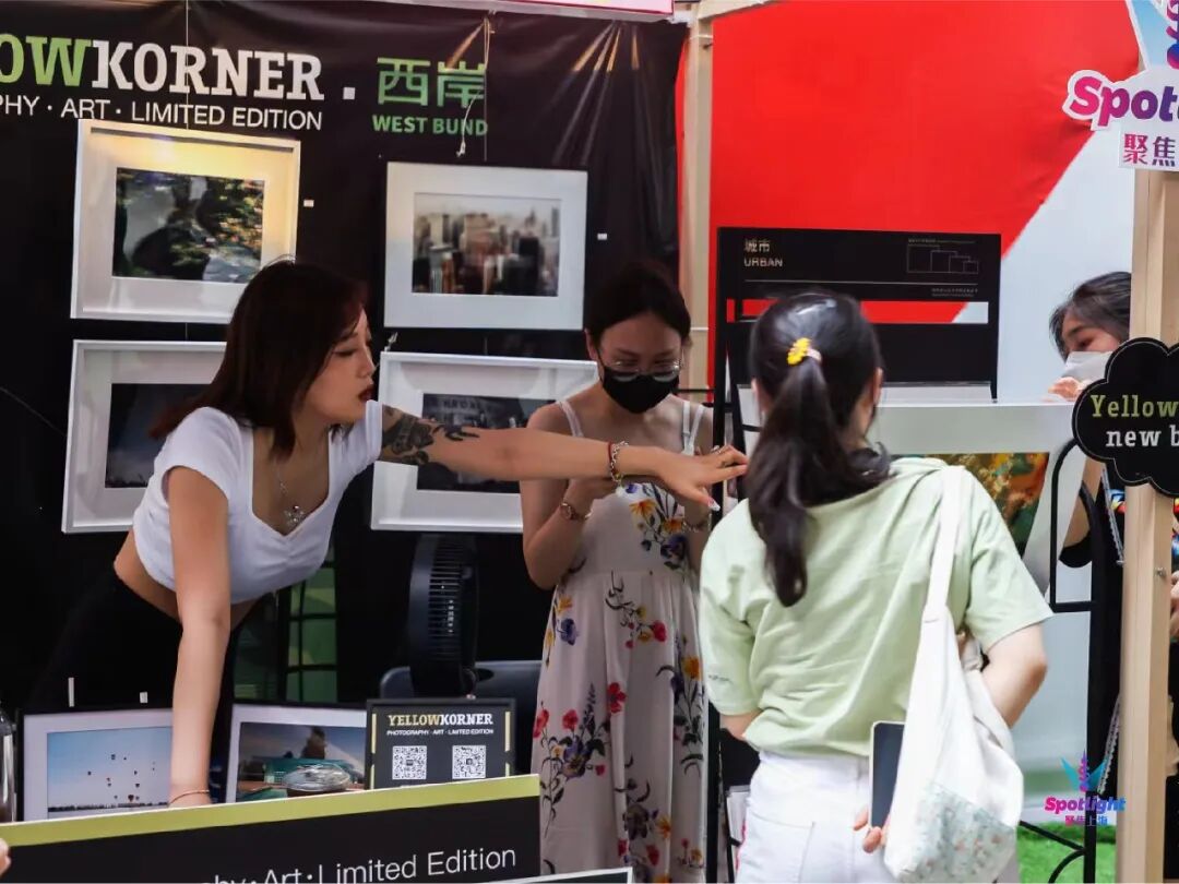 艺术市集现场,陈皮工作室展位前设置的以SPOTLIGHT聚焦上海艺术市集为主题的手绘动漫长卷轴吸引了很多不同年龄段的朋友参与填色。小朋友们蹲在展位前提笔填色,温馨的亲子互动在这里上演,而画布上留下的痕迹是他们艺术灵感最直观的体现、最生动的描绘。