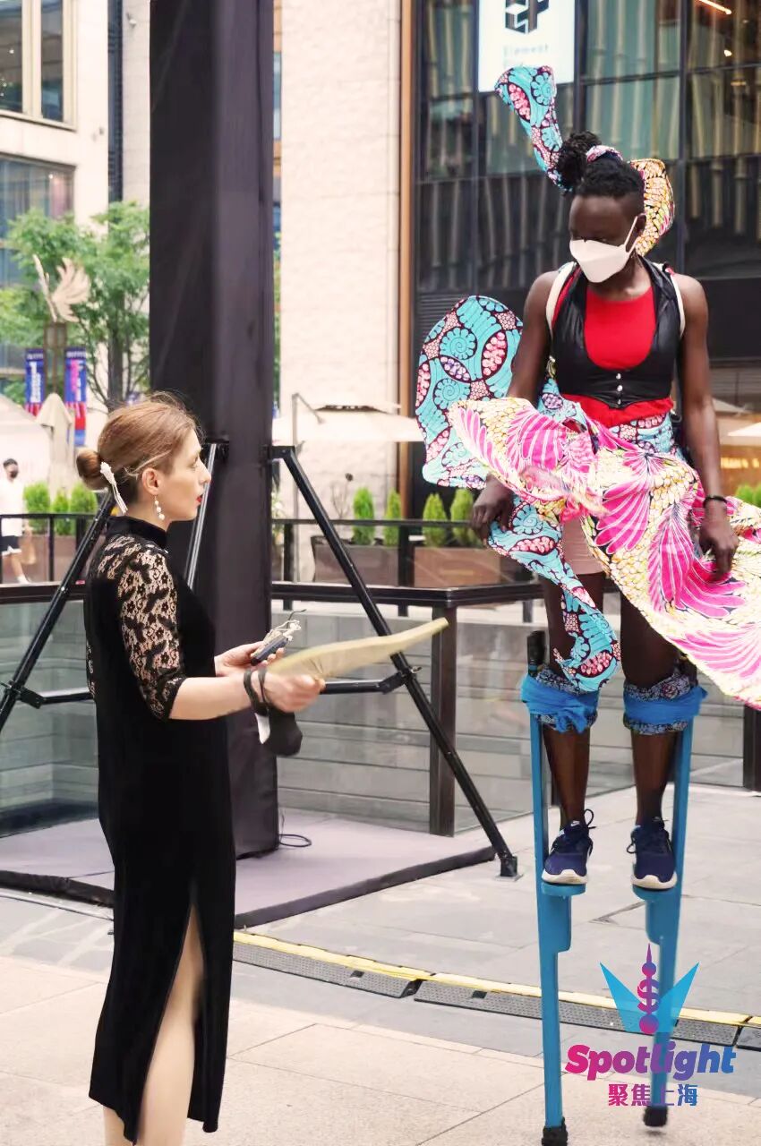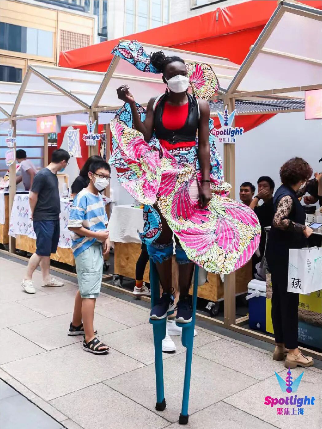 来自巴巴多斯的Glenis Paul的“黑人踩高跷”表演也是艺术市集不可错过的亮点。每周艺术市集,Glenis Paul都会穿着由她自己设计的不同款式的服装进行“踩高跷”表演,民间特色显著。在第一周市集上,她的服装设计灵感来自于巴巴多斯色彩鲜艳的花朵,这种独特的艺术形式为艺术市集燃起了最浓厚的艺术氛围。在后续活动中,巴巴多斯驻中国大使馆的总领事也会亲临现场,共同领略艺术的魅力。
