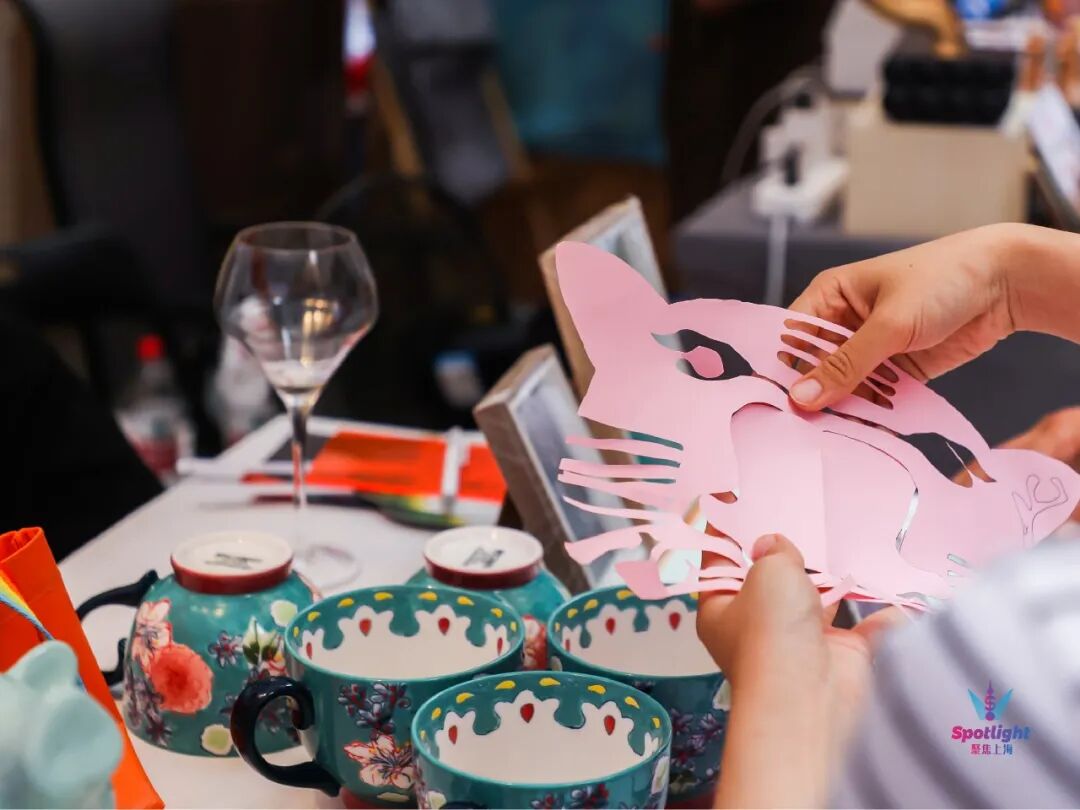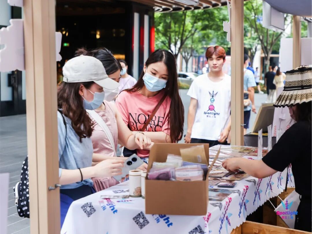 在Spotlight聚焦上海展位上,开展了“古风画扇子”的互动活动。