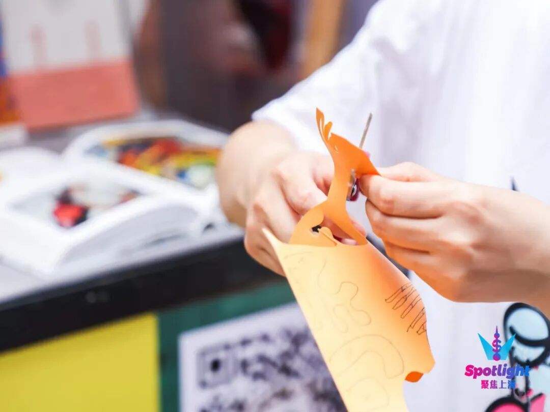 厘米空间的剪纸活动也是市集现场的火爆项目之一,让剪刀在纸上自由穿行,不过一会儿,栩栩如生的图案便跃然纸上。在现场,不少小朋友专注地勾勒图案、剪纸,可谓是亲子互动的绝佳机会。
