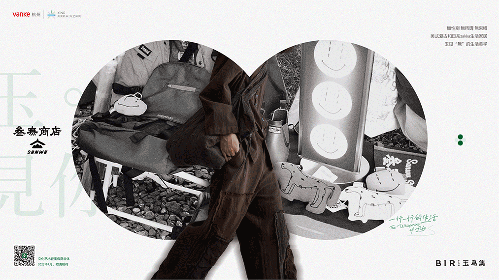 除了书店和艺术展览馆,玉鸟集也吸引了一批融合商业、艺术、生活美学和体验的零售空间。比如,主打無性别、無束缚、無所谓的复古生活方式集成店叁無商店、中国原创家具设计品牌挑时tells全国首店、日式服饰品牌松永、新中式服装品牌游一等。