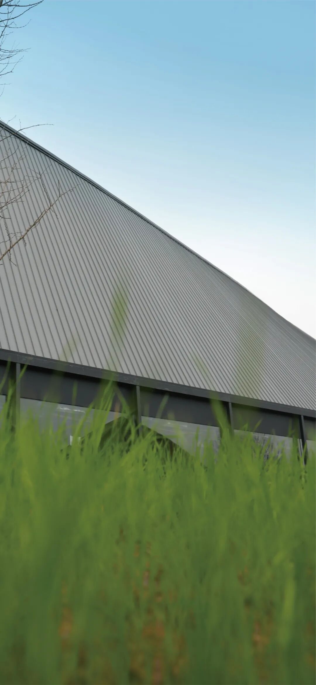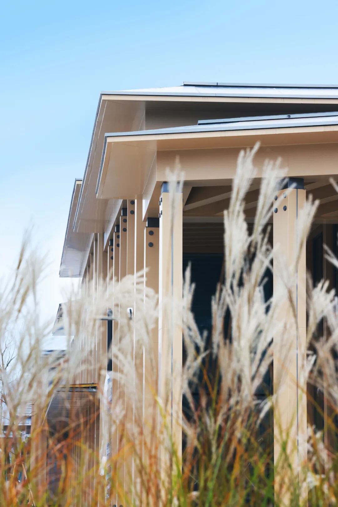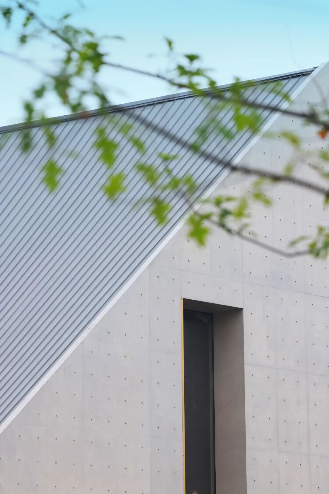 「大谷仓」的屋顶演化于常规双坡屋顶,根据功能性和场地属性做了调整,使屋脊呈现打开状态,让光线可自然洒进室内,以此塑造地标建筑的精神属性。