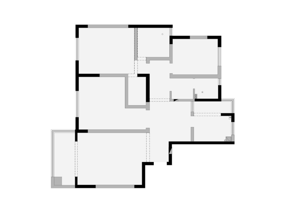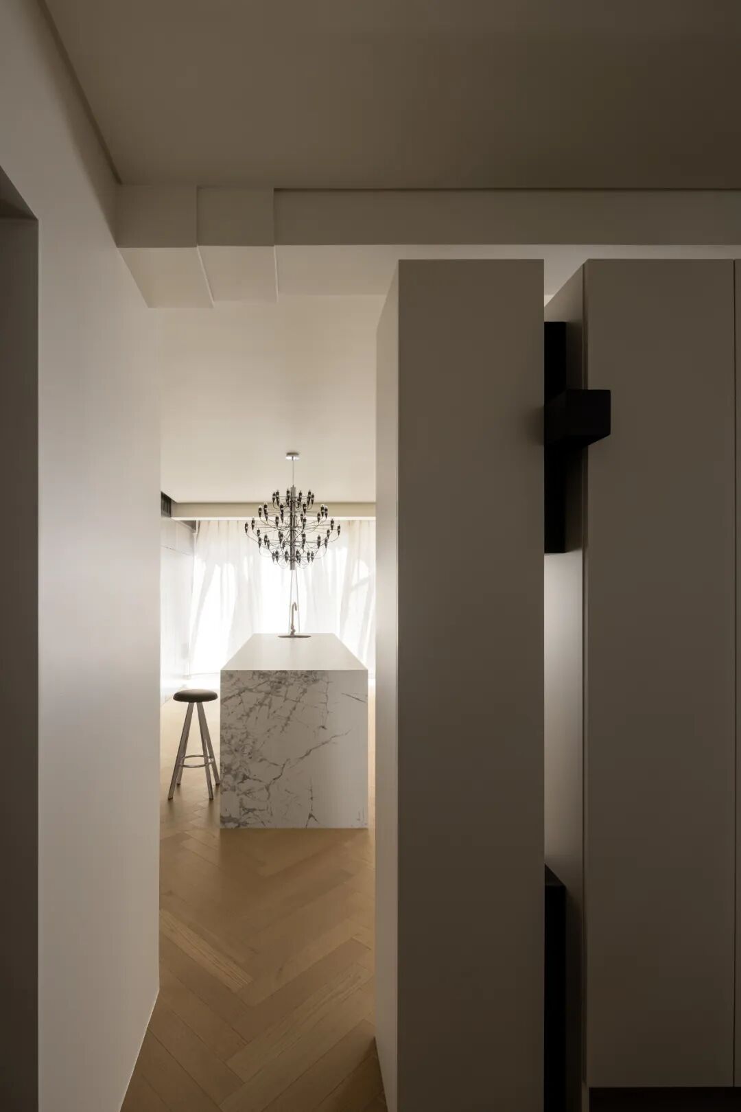 This is the perspective of household entry in this case. For the non -demolished load -bearing walls between the restaurants, the hierarchical relationship is increased with stone columns.