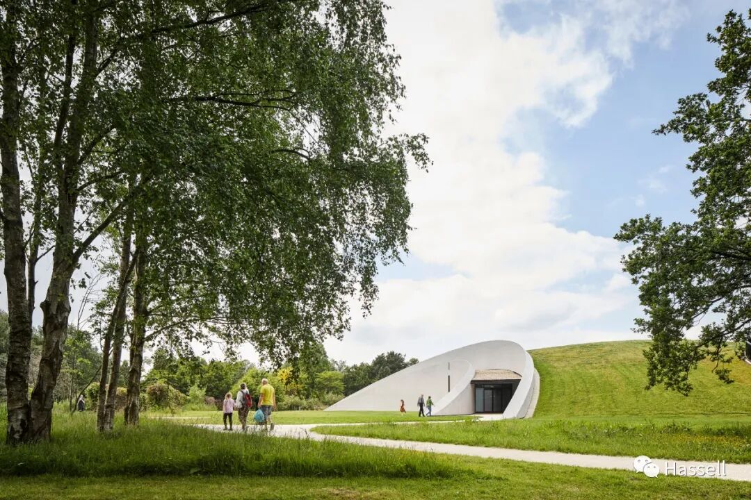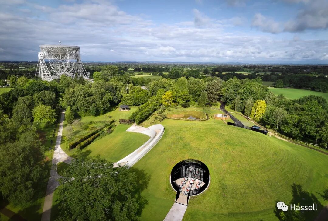 在展馆的设计过程中,我们和展览设计策划方Casson Mann紧密合作,致敬场地宝贵的历史价值和射电天文学最初期的阶段,展馆为草坪覆盖的穹顶建筑形式,融入周围的自然景观中。