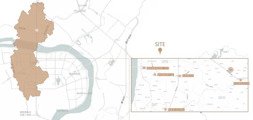 株洲—中华民族始祖炎帝神农氏的安息地,楚文化发源地之一。项目位于长沙东南部,毗邻湘江,地势起伏较大,基地最高点与最低点之间相差35m。