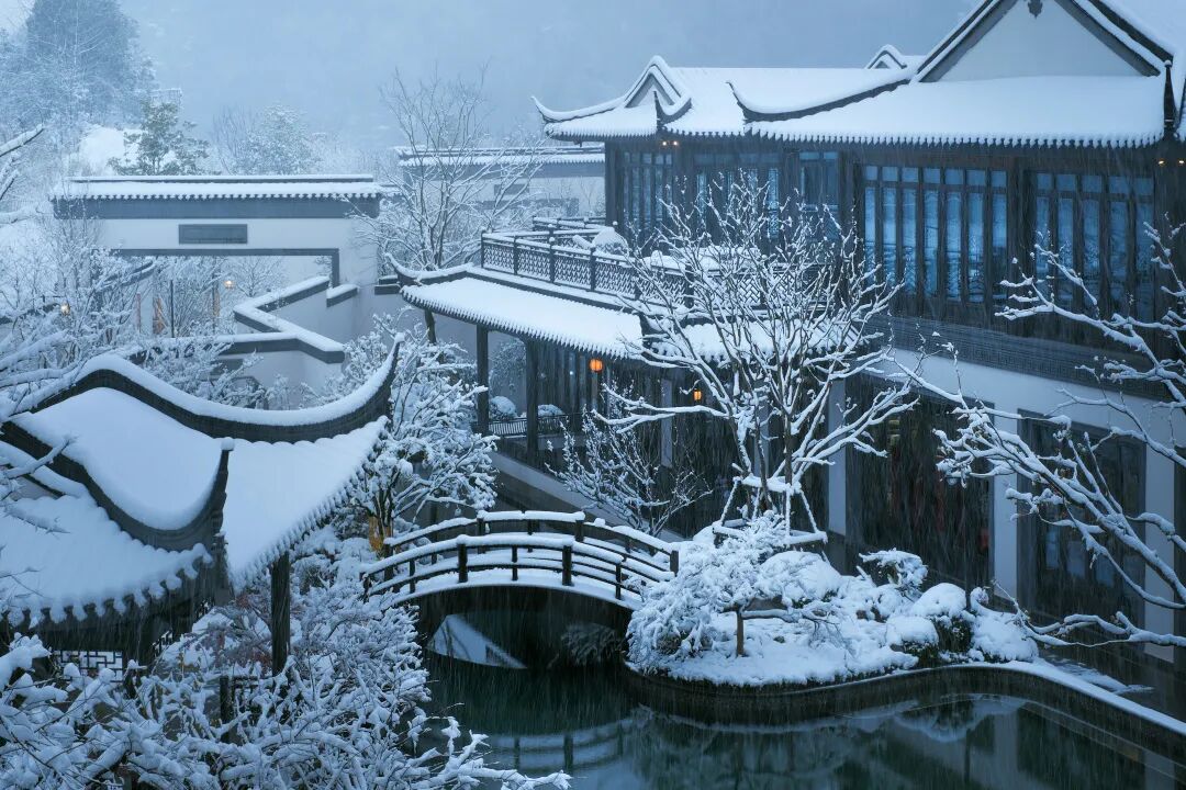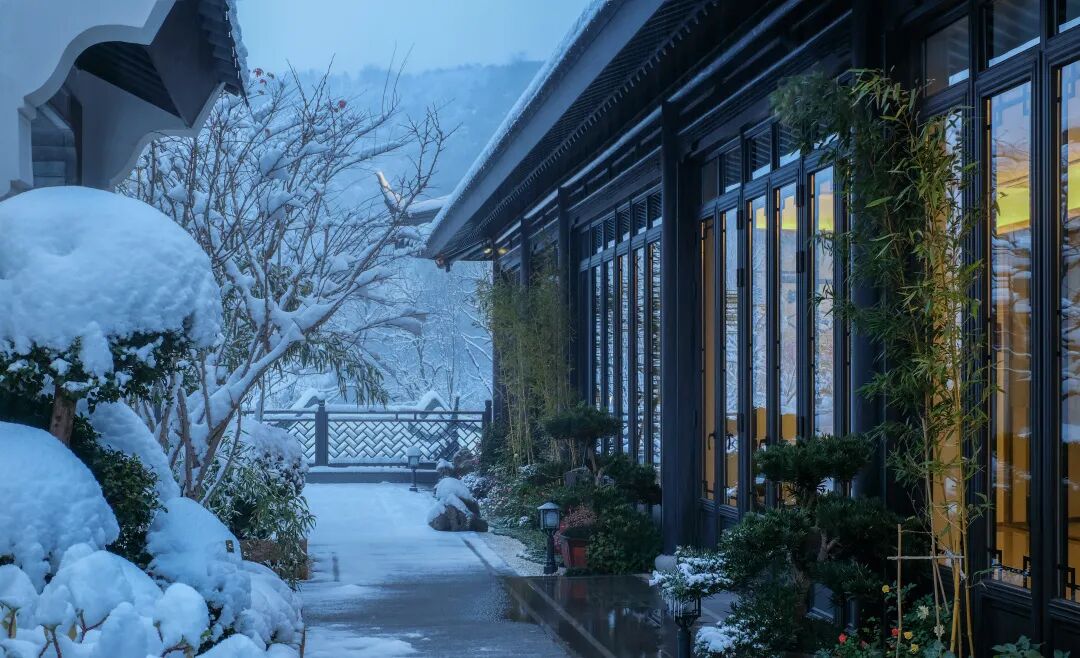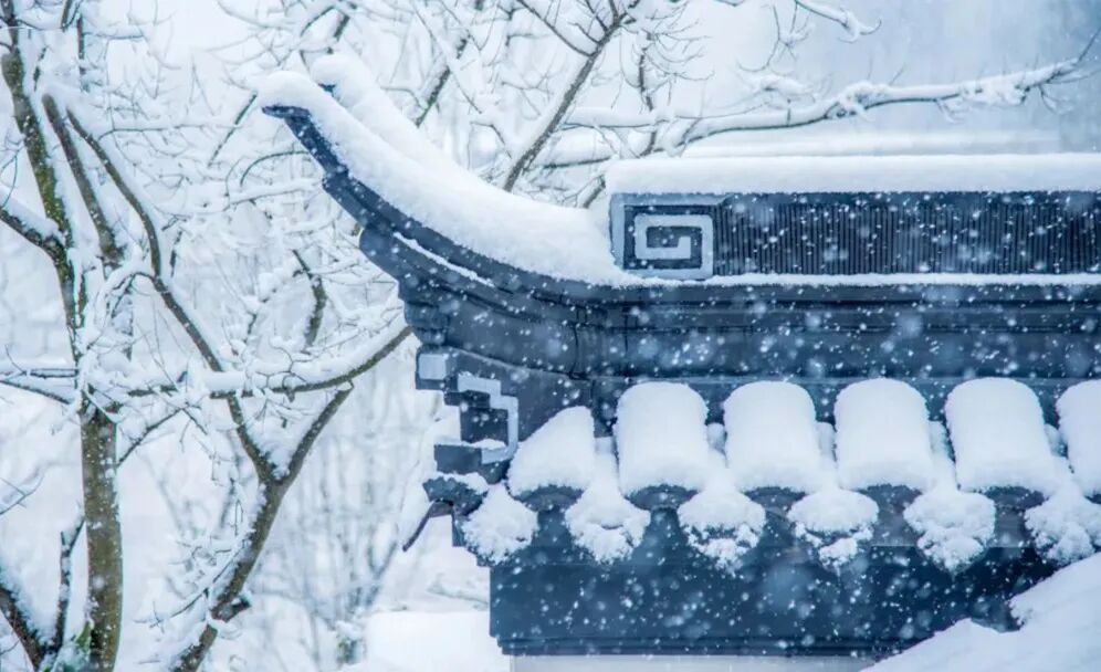 园林之于赏雪,是一方绝妙去处。雪落于黛瓦青墙、旧庭深院。《红楼梦》中“琉璃世界白雪红梅 ”正是描绘院中雪景。