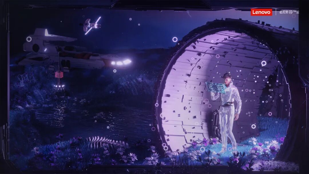 联想品牌点评:成功营造未来神秘科技与自然的交互感,虚拟人角色构图突出,画面细节美观