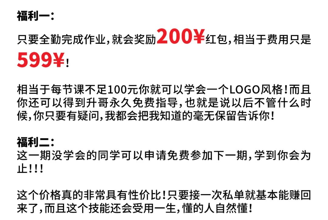 新一期的LOGO训练营开课时间是11月7号,费用是799,如果全勤做完作业就奖励200!