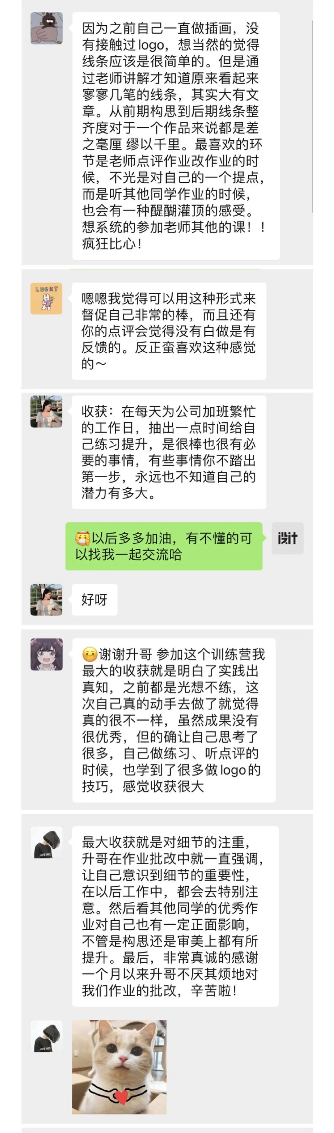 那么新一期的LOGO训练营也正在招新,如果你平常想练习没东西,面试又没什么作品的话,都可以来升哥这个训练营玩一下!