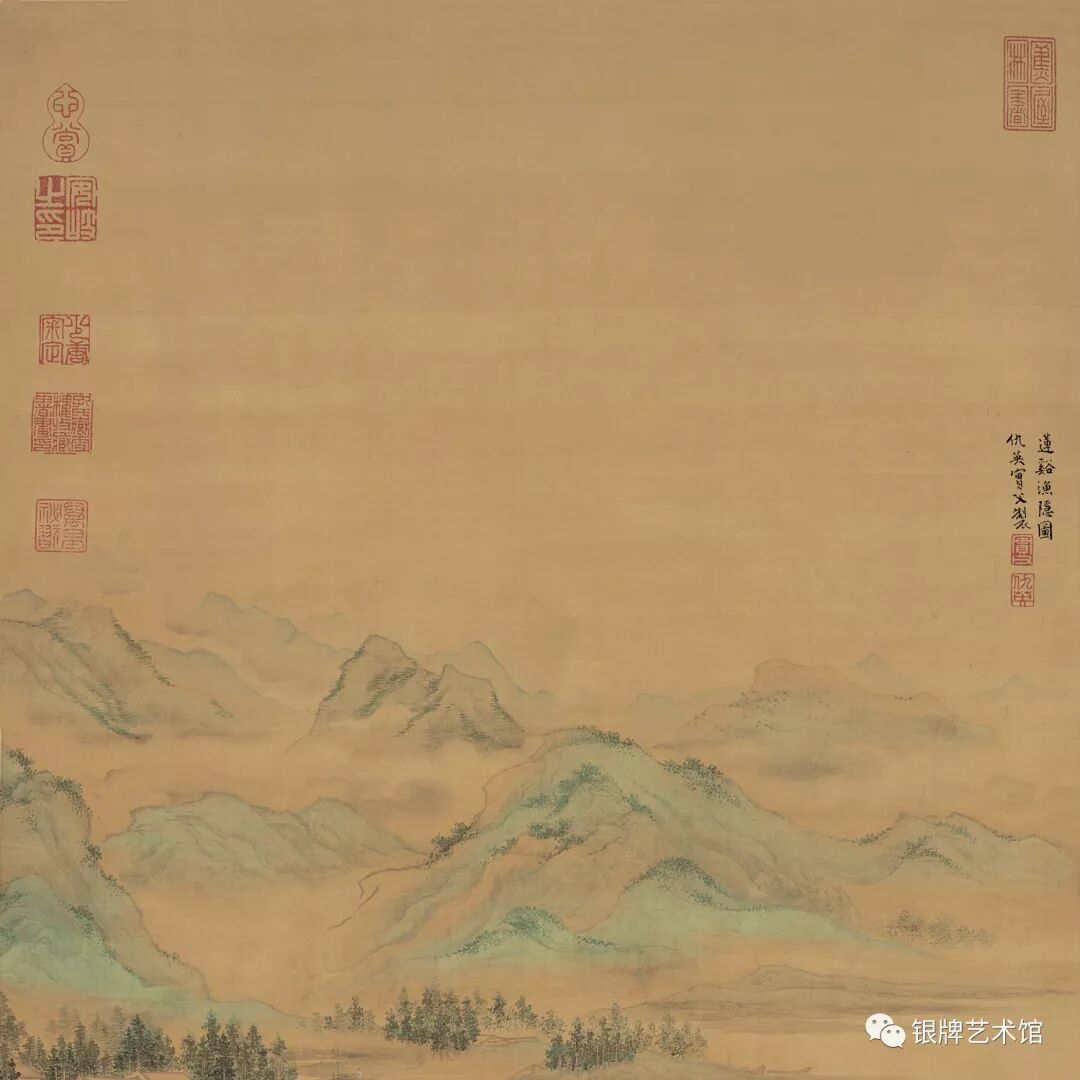 前景的工细浓丽与远景的润泽简淡,使这幅莲溪渔隐图景在清旷秀丽中闪现出文人画的妍雅温润的意趣,有着其简淡率意的一面。