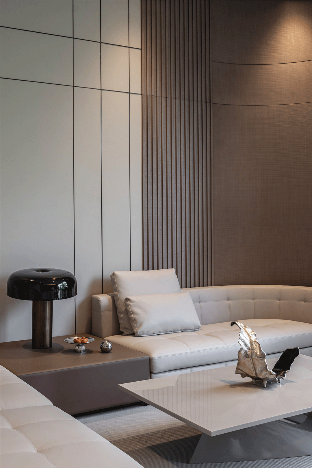 VIP室软装大胆尝试,增加着空间的层次感,局部配以融于时尚的人文艺术品,不同的材质与触感展现着场域的精致与艺术。