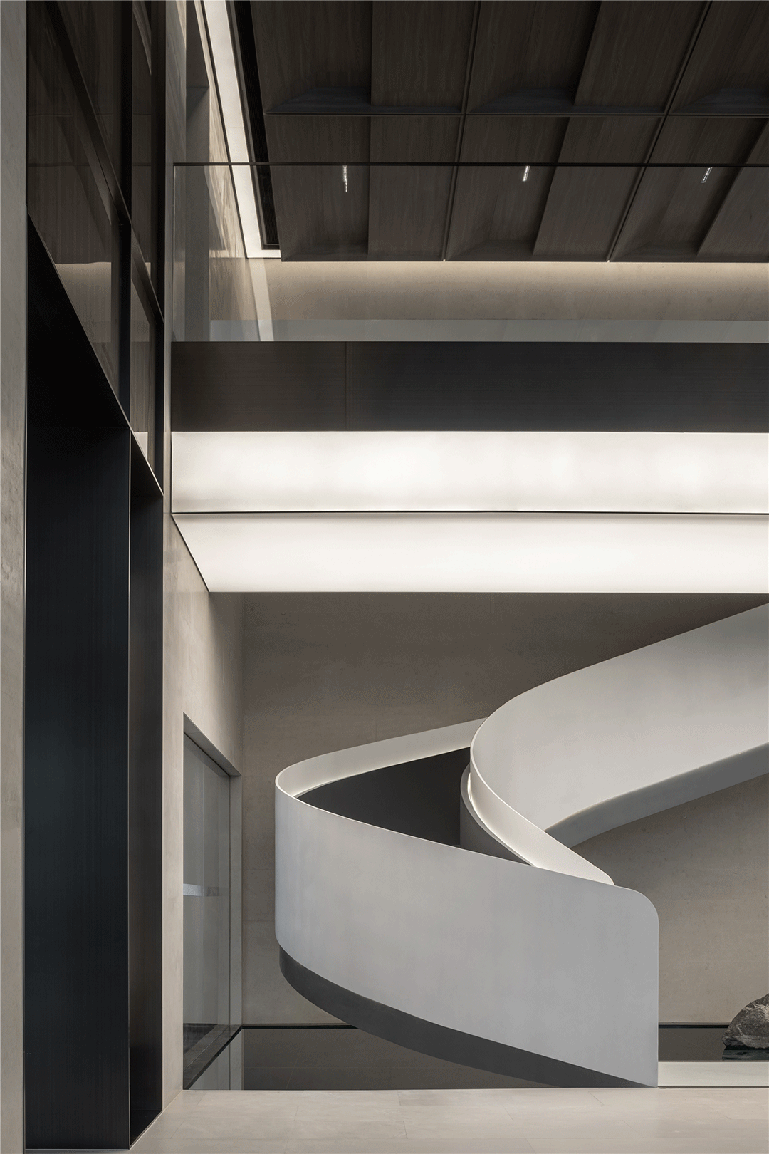 展示区设有一条半透明步梯,若山间小径,从天上蜿蜒而下,自由而曲折。