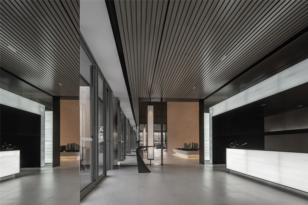 水之境。水面与户外景观水池相连,隐约的建筑边界,让人进入一种空无的境界。