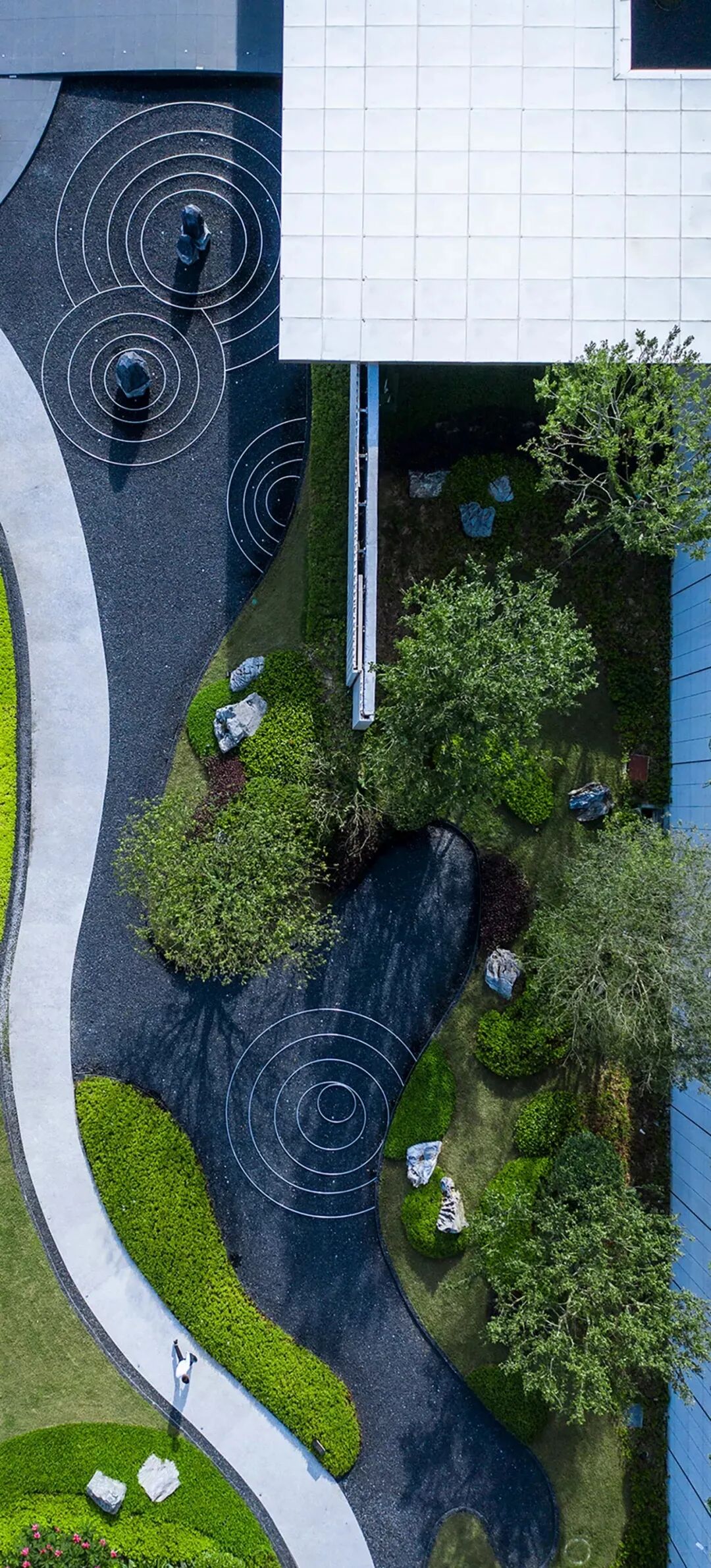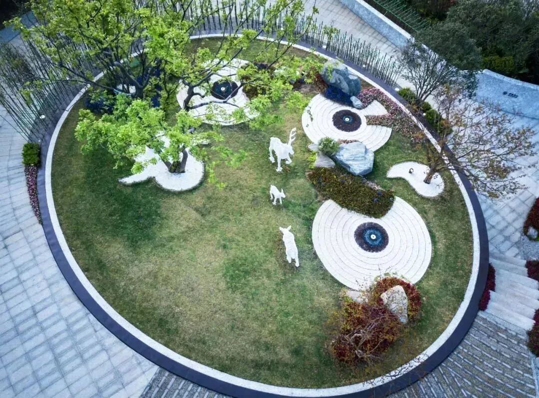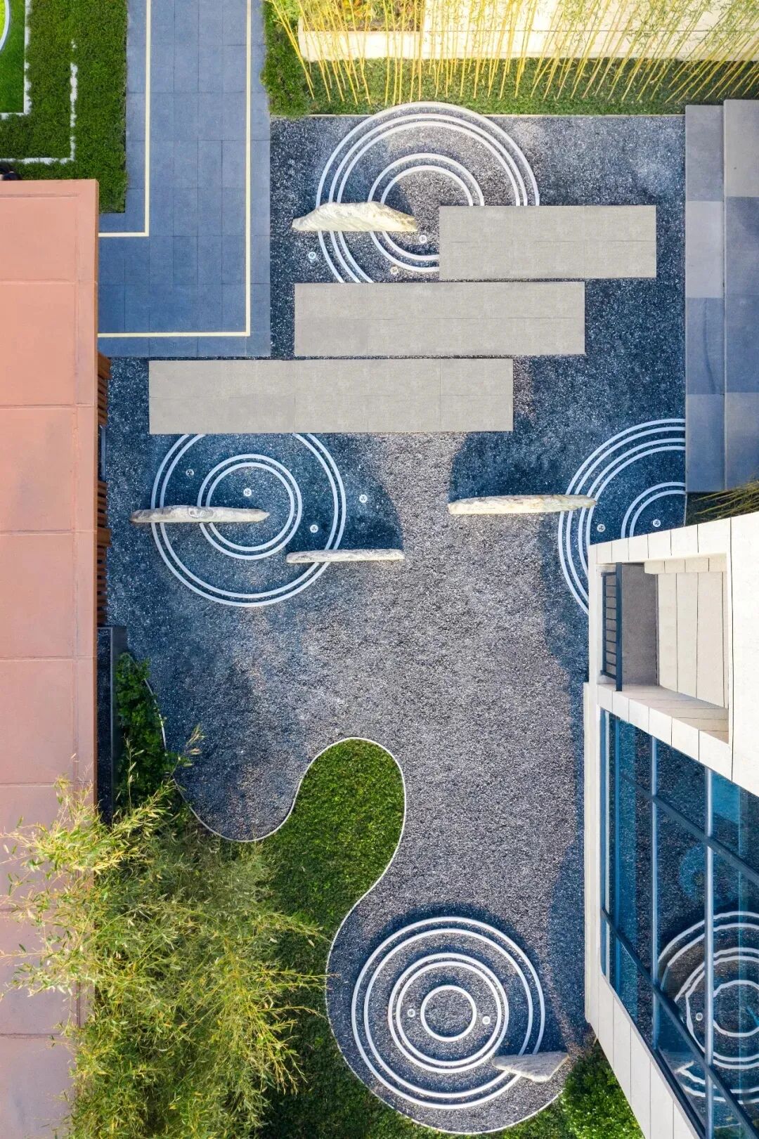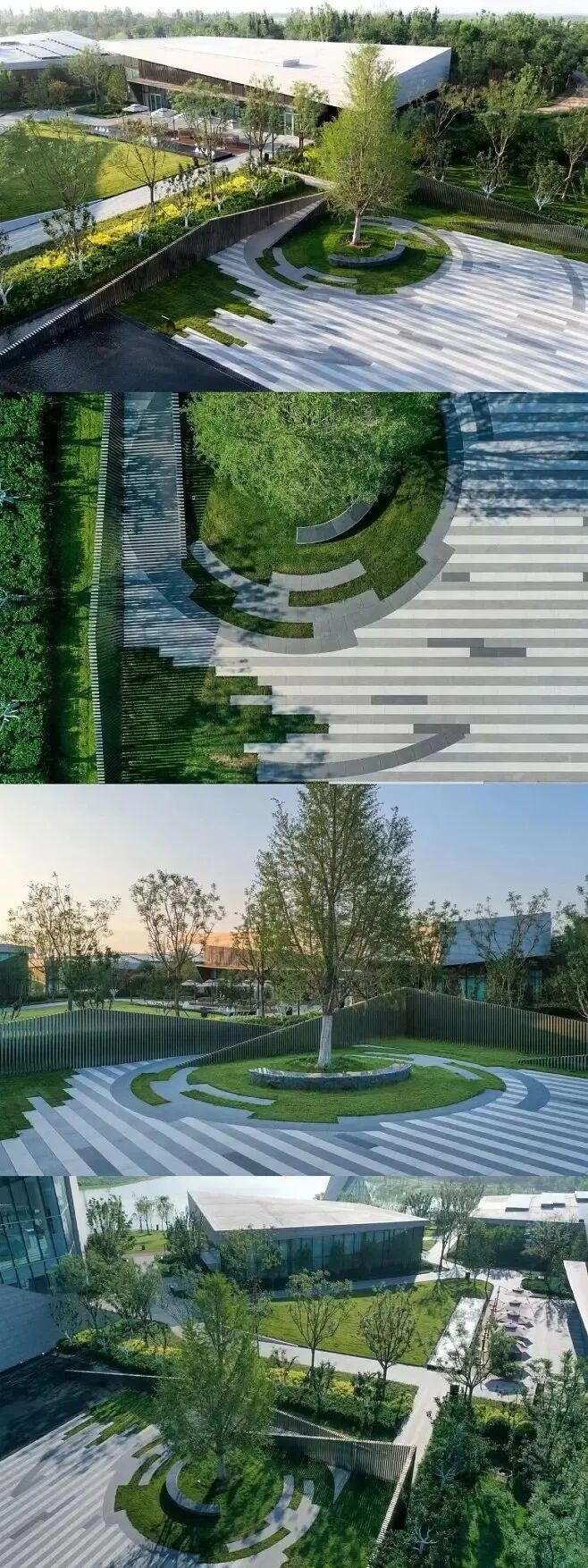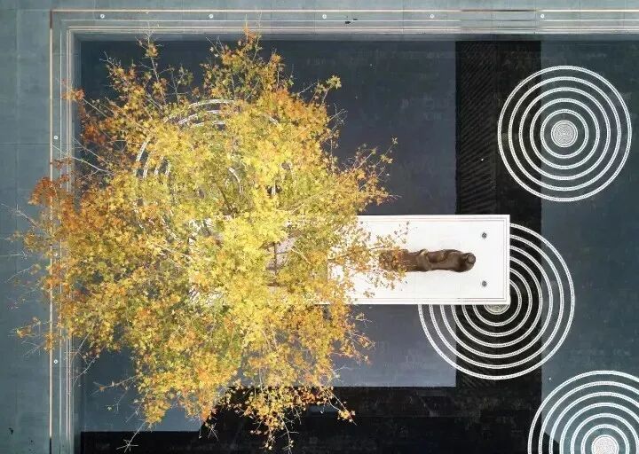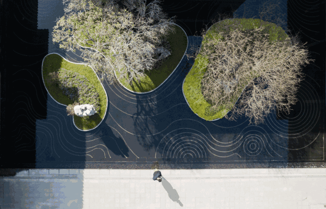 草地围绕大树、在铺装上扩散,似水之涟漪