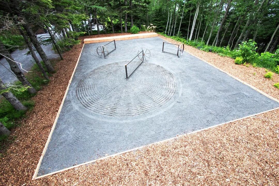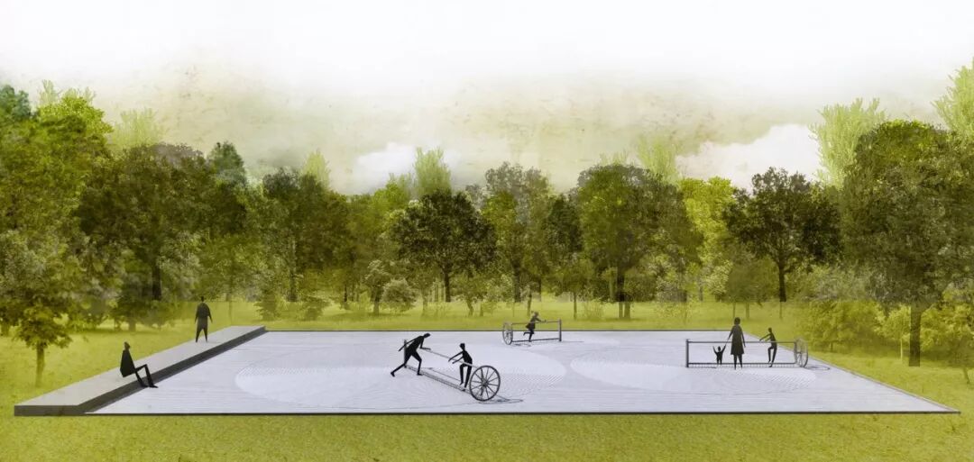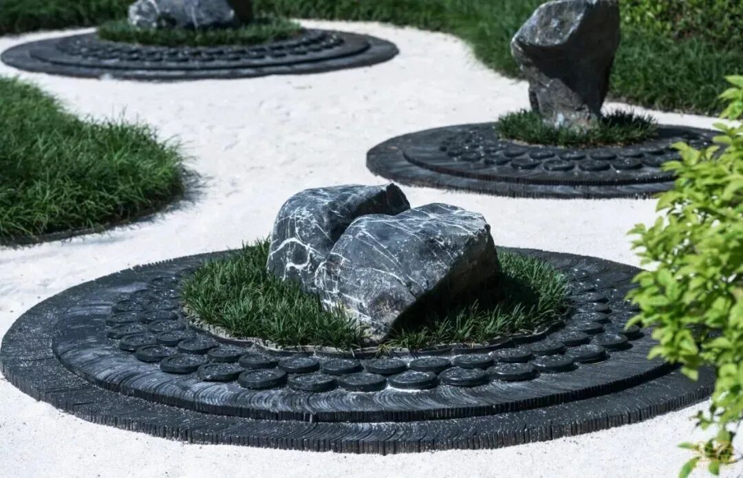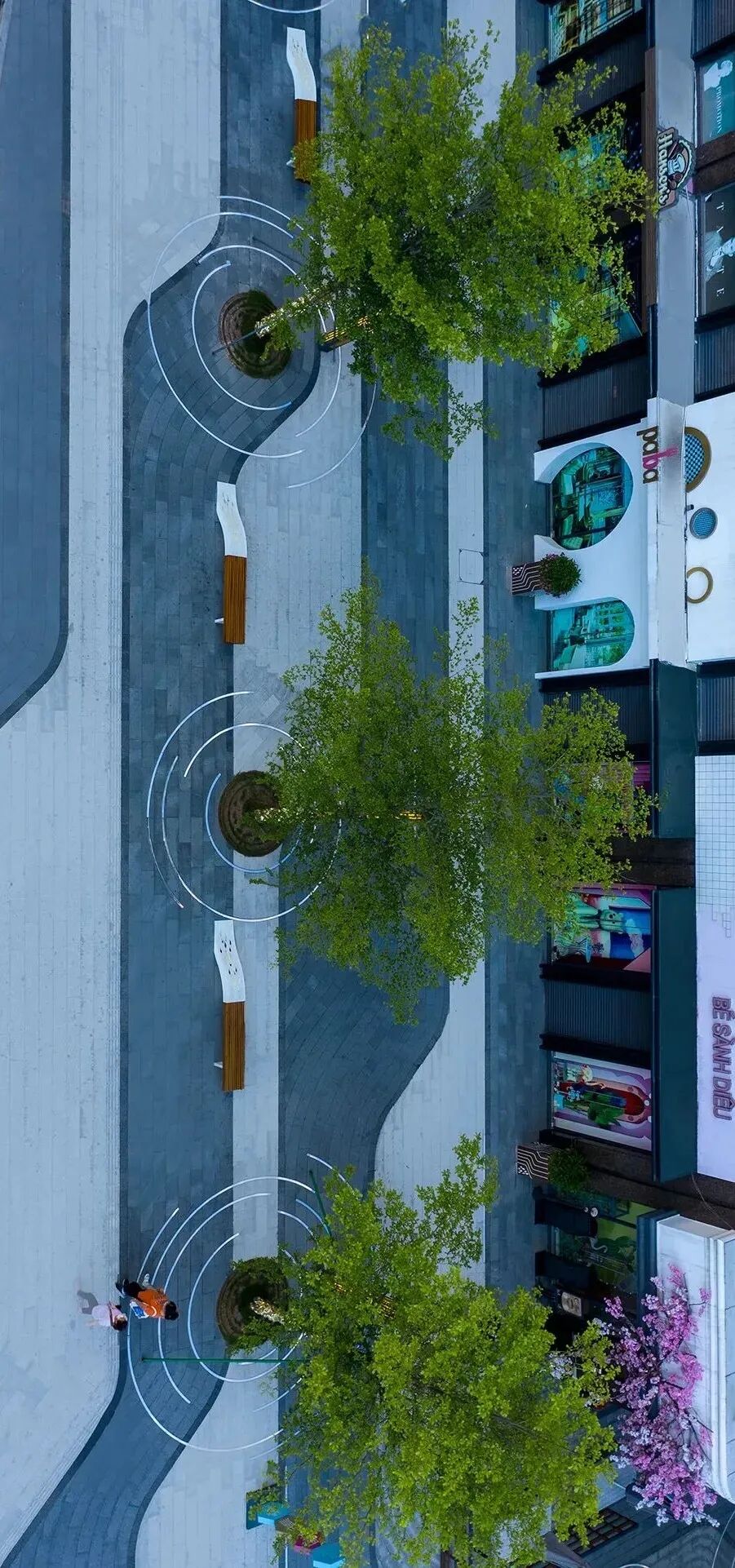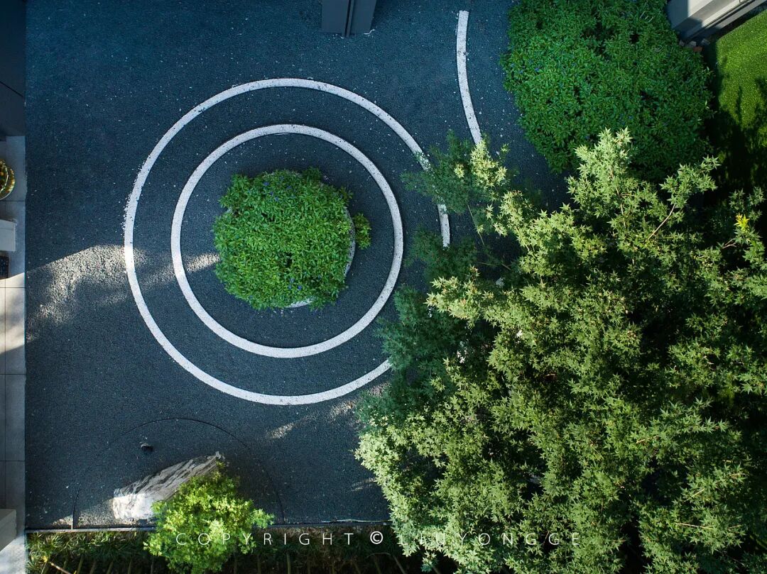 草地围绕大树、在铺装上扩散,似水之涟漪