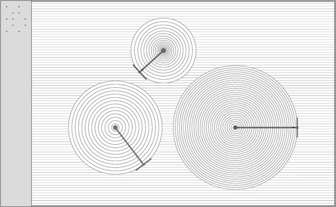 一圈一圈的线条组成的同心圆、弧线,就像是泛起的一圈一圈的涟漪。