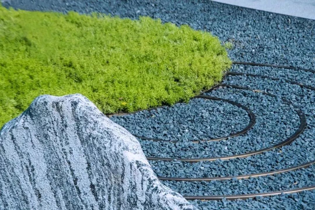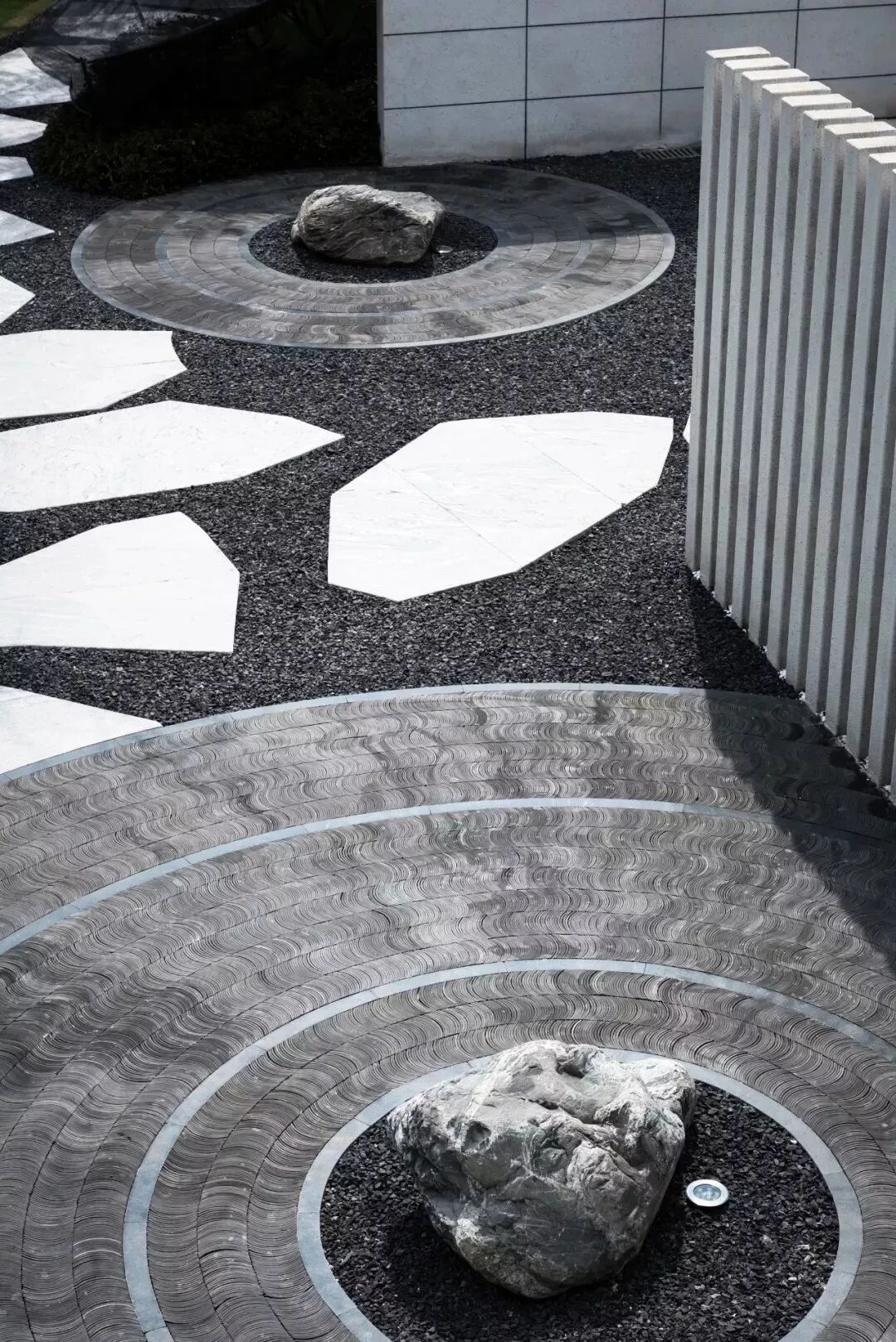 瓦石因其造型,一片片铺装排开,就像水波纹一般