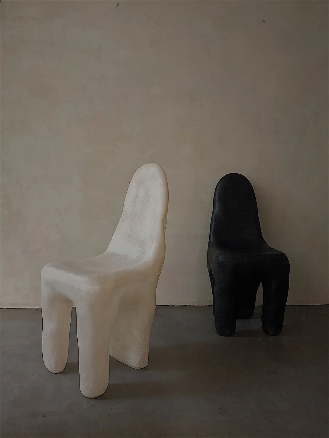 粘土这种材料最能够反应创作者当下的情绪和感受,这些元素会通过手部按压的动作印在模型上,每一处按压的力度、手势的把控、还有粘土的反馈,温度、柔软度等,都贯穿着整个创作过程。之后,我们把模型扫描到电脑上,再仔细调整以保证稳定性和可用性。最后再使用数字模型为玻璃纤维的生产创建一个全尺寸的实体模具。这就是“非刻意而为之”这一批家具的创造过程。