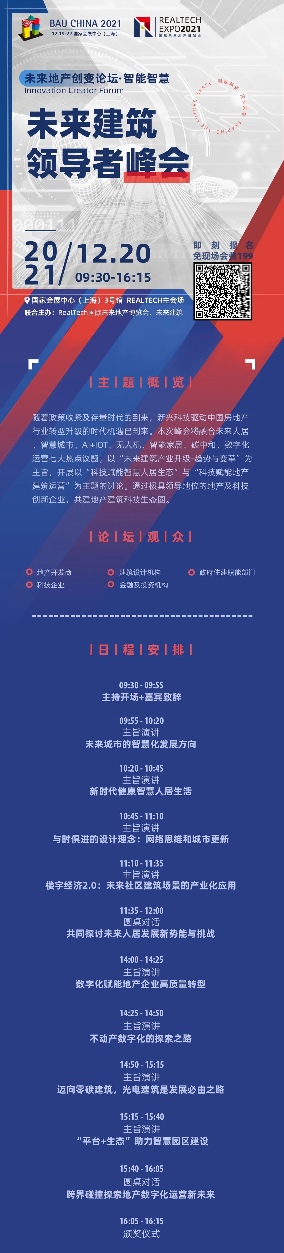 本次峰会将集结建筑地产科技大咖,聚焦当前行业最具发展前景,突破性的科技议题,将为建筑地产行业引领者和探路者搭建高水平的交流平台。还等什么?点击上方海报,现在报名,立省199!