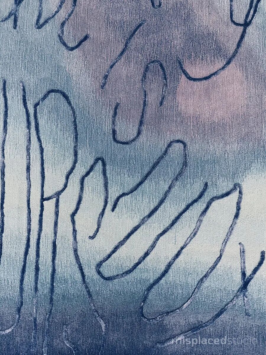 过程其实最难的是,如何与艺术家沟通:“在地毯制作过程中 misplaced studio 会尽可能地还原艺术家最原始的创作,哪怕经过了地毯层层工艺,都能使得真正的成品与原始创作尽可能一样,同时,我们也会思考的是,该如何重新诠释这幅艺术品。”