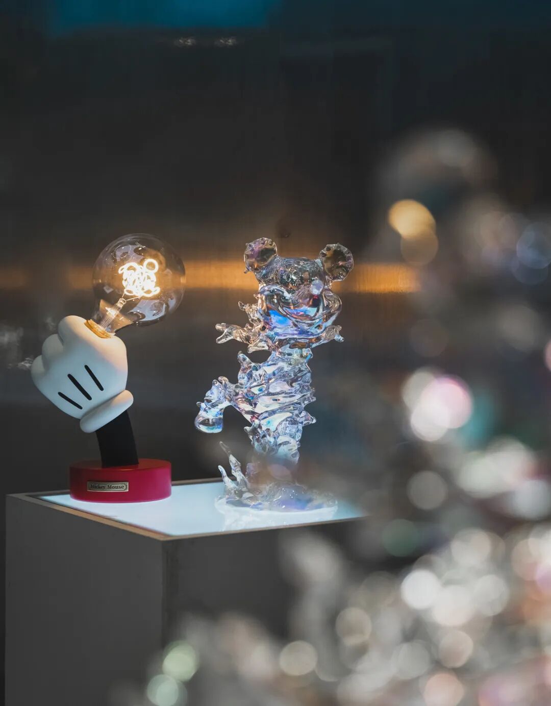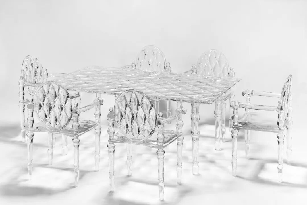 由SUNDAY HOME主理人所设计透过潮流艺术的设计创意,完美将古典、潮流、艺术与家居融合在一起,以当代特殊透明材质铂晶三代合成树脂材质呈现设计中米奇元素触目皆是,水晶般的质感,营造独特的视觉冲击感,切身感受艺术的温暖,为空间注入灵魂,展露出空灵飘逸的光学美感。
