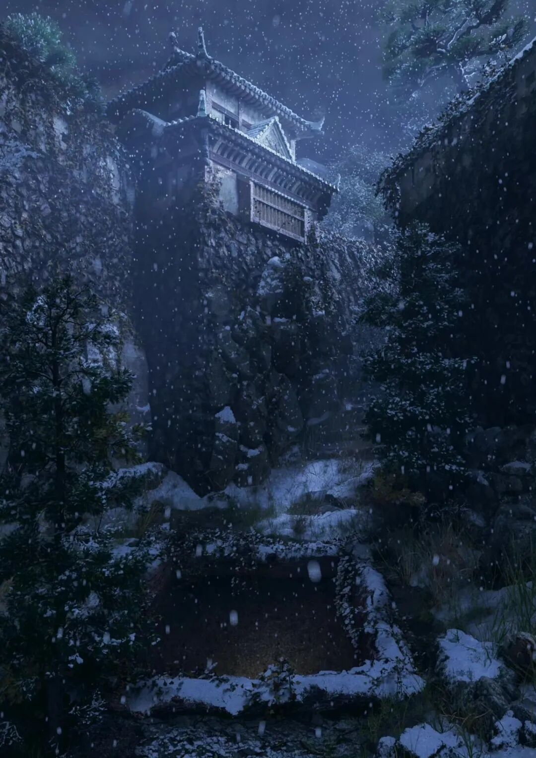 我印象最深刻的作品是雪夜,灵感来源于我非常喜欢的一款游戏《只狼》。